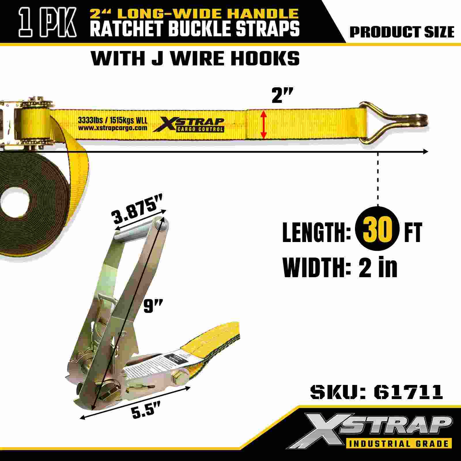 Xstrap 61711 Premium Ratchet Tie Downstraps 2" x 30ft (1-pack) با قلاب سیمی، 10000 پوند استحکام شکست، بسته کاری سنگین برای حمل و نقل سخت