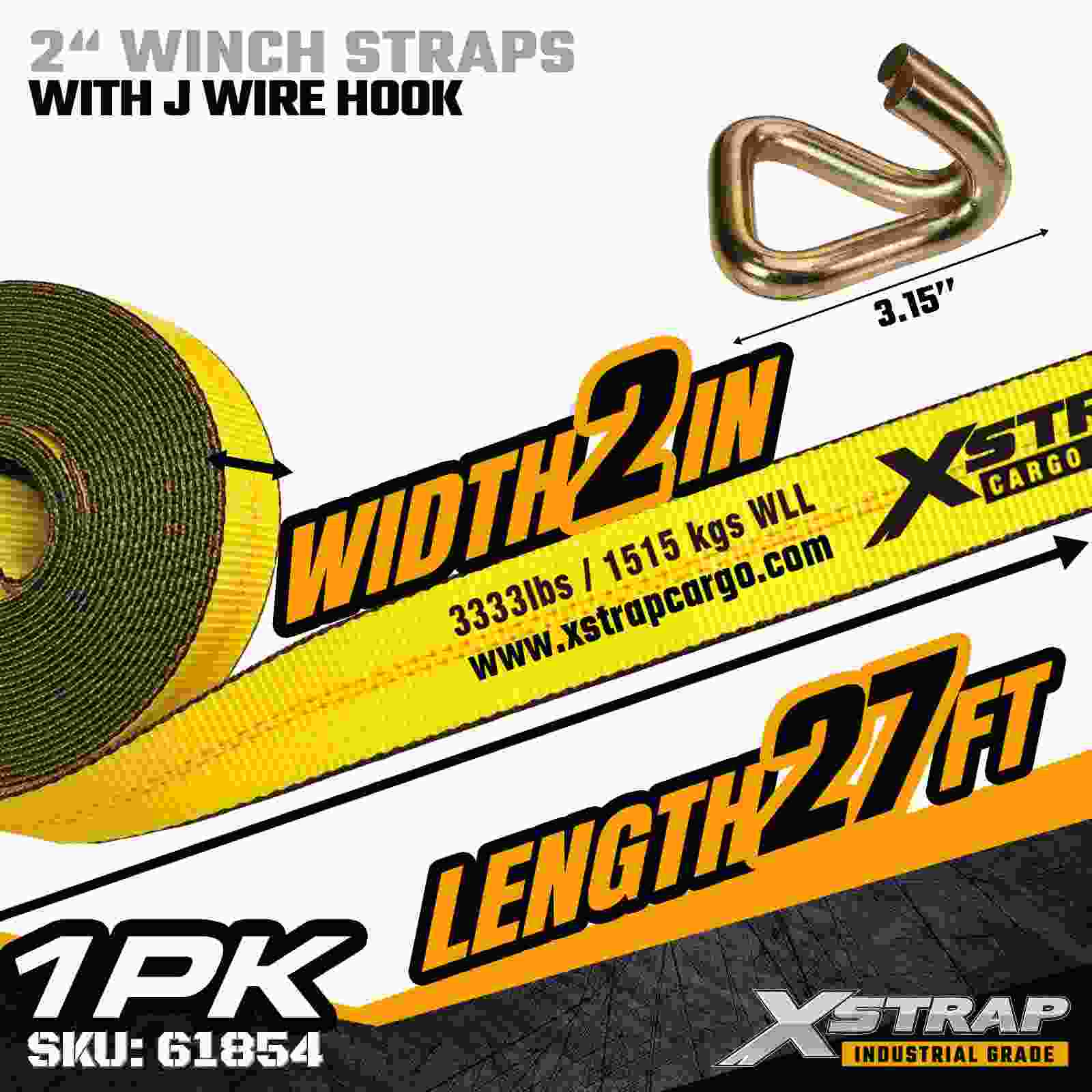 بند وینچ استاندارد 2 اینچ × 27 فوت با قلاب سیمی