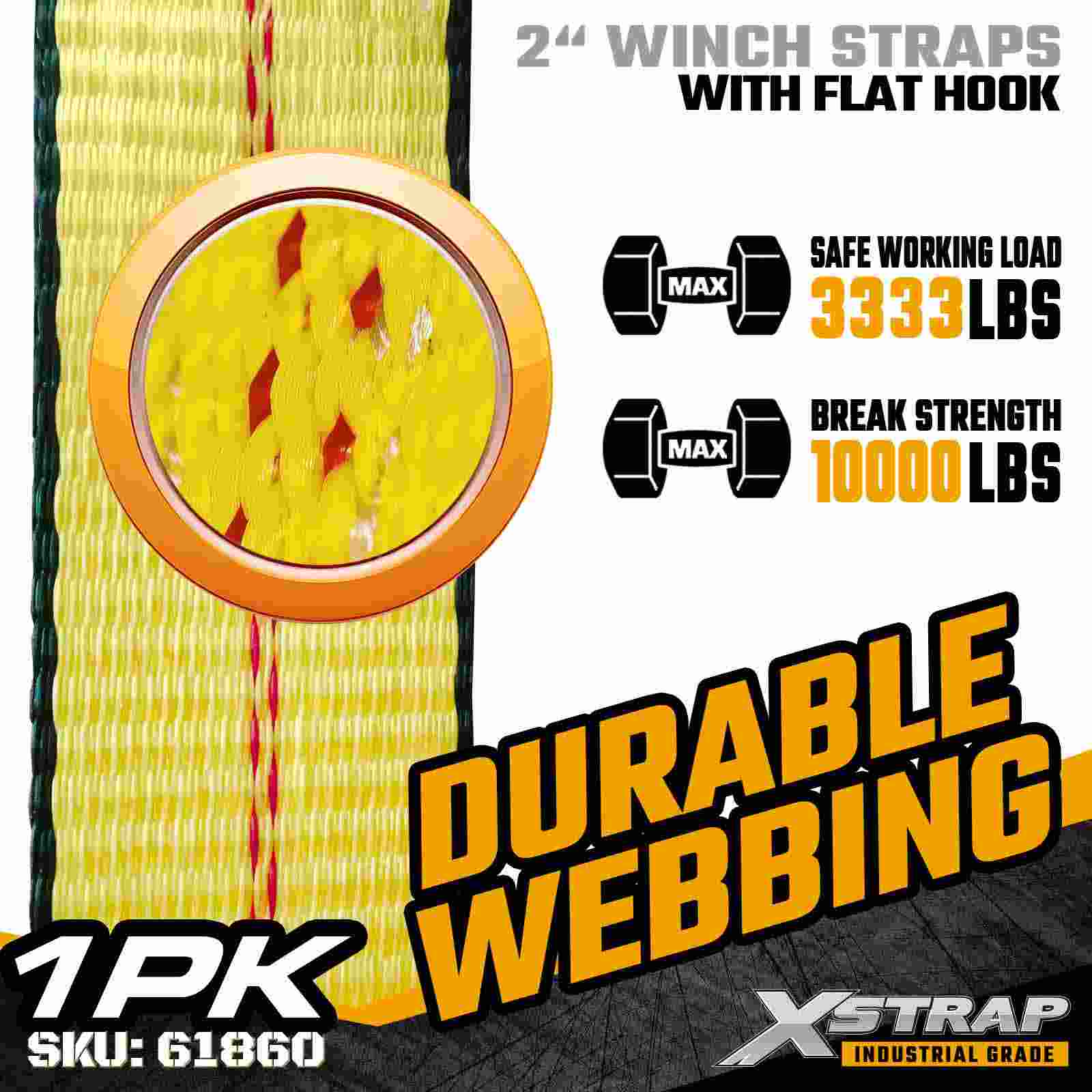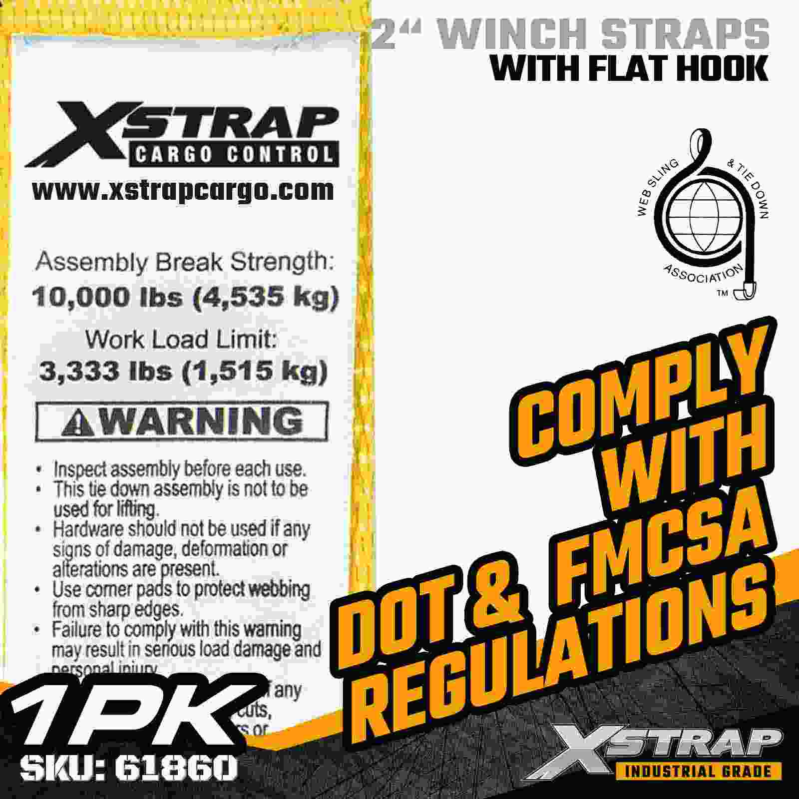بند وینچ استاندارد Xstrap 61860 2 اینچ × 27 فوت برای ایمن سازی محموله قابل اطمینان در بستر مسطح ساخته شده است، دارای قلاب مسطح تقویت شده و تارهای پلی استر با استحکام بالا. با محدودیت بار کاری 3333 پوند و 10000 پوند برای کارایی انقباض بدون مقاومت روزانه، قابل تحمل است. بارها، چوب و کاربردهای لجستیک عمومی