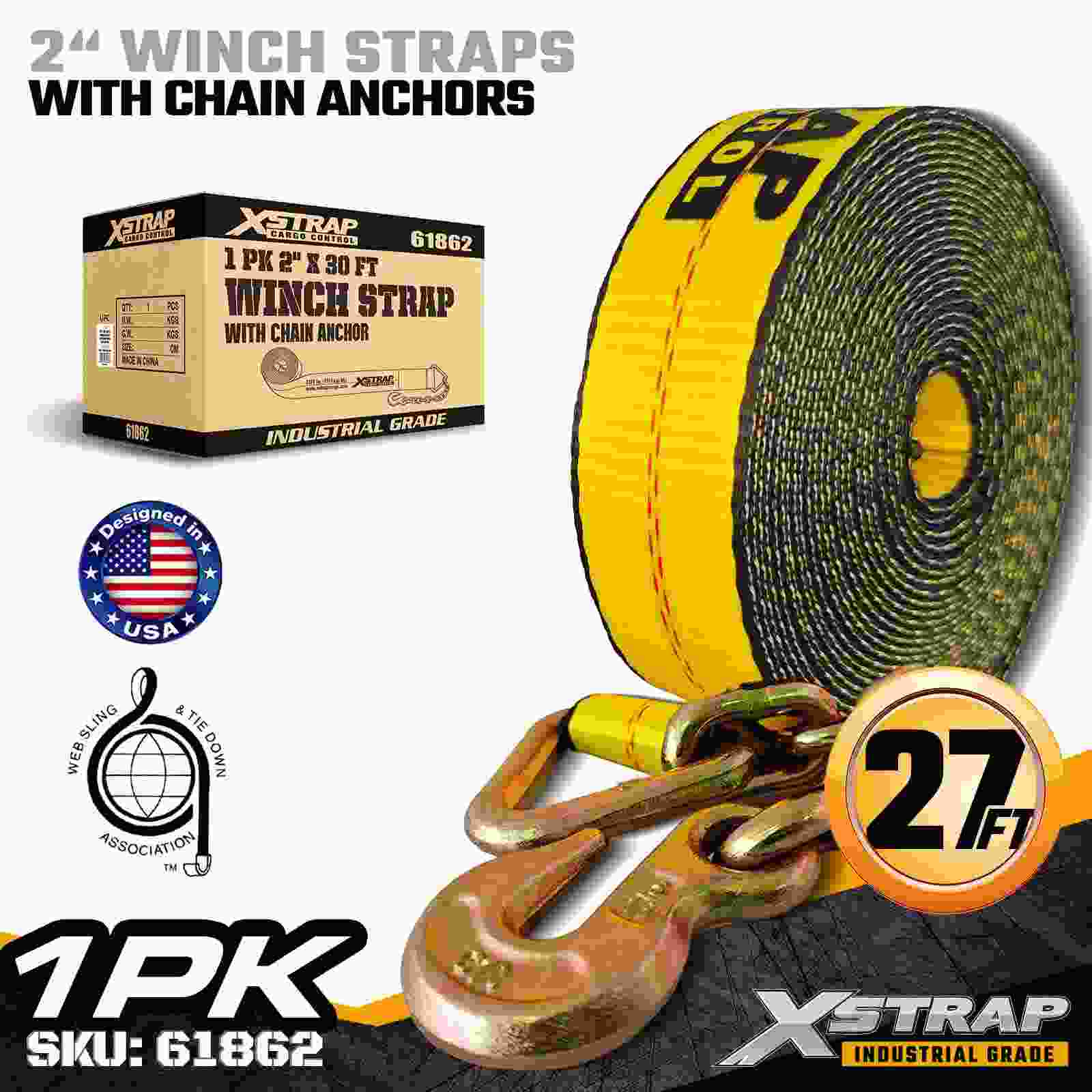 تسمه وینچ استاندارد Xstrap 61862 2 اینچ × 30 فوت برای ایمن سازی محموله قابل اطمینان در بستر مسطح ساخته شده است که دارای لنگرهای زنجیره ای بادوام و تارهای پلی استر با استحکام بالا است. با محدودیت بار کاری 3333 پوند و 10000 پوند استحکام بارگیری قابل تحمل برای بارگیری روزانه را فراهم می کند. الوار، لوله ها و کاربردهای لجستیک عمومی.