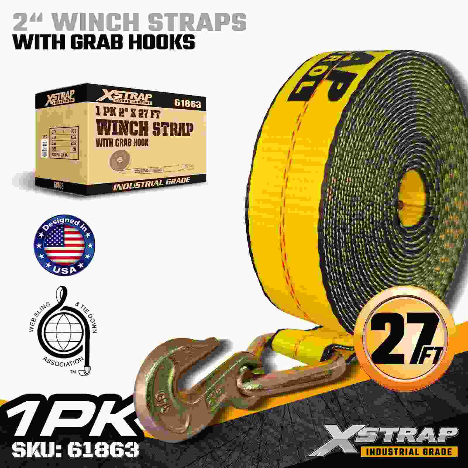بند وینچ استاندارد Xstrap 61863 2 اینچ × 27 فوت برای ایمنسازی محمولههای قابل اعتماد در بستر مسطح طراحی شده است، دارای قلاب گیرهای ناهموار و تارهای پلی استر با استحکام بالا. با محدودیت بار کاری 3333 پوند و 10000 پوند استحکام باری قابل اعتماد برای عملکرد روزانه، قدرت باربری قابل اعتماد ارائه میکند. بارها، الوار، لوله ها و کاربردهای لجستیک عمومی.