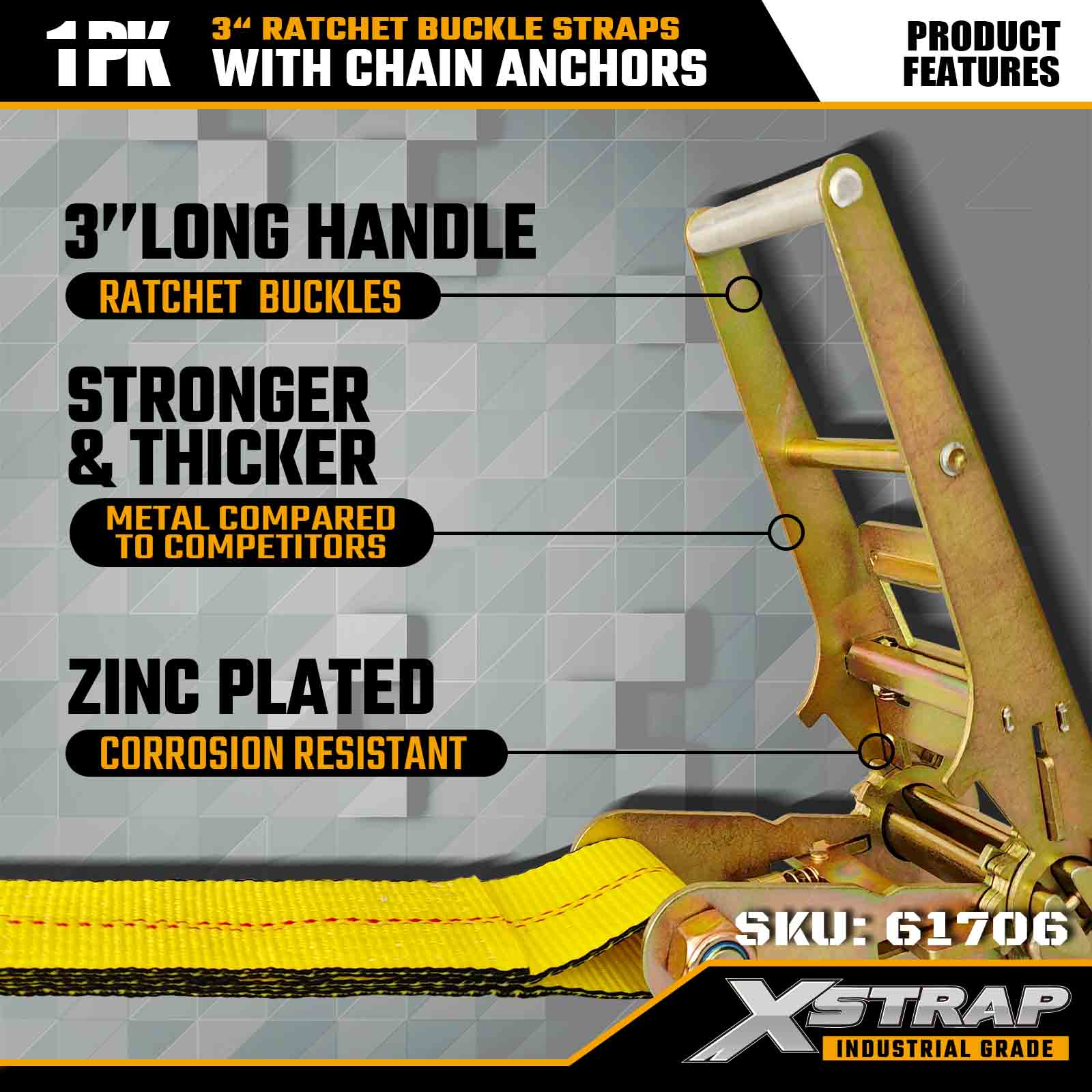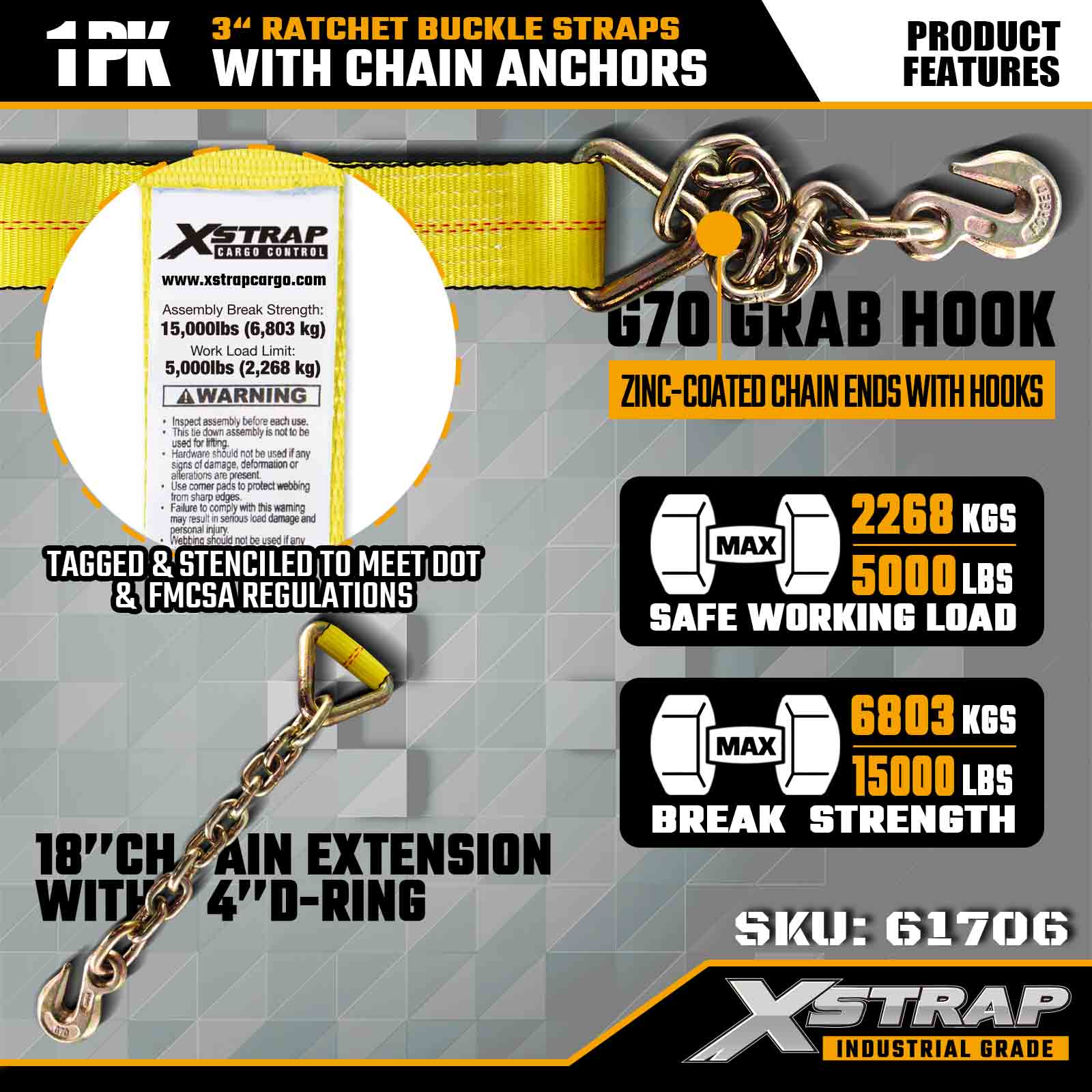 بند سگک ضامن دار 3 اینچی Xstrap 61706 (1-بسته) برای ایمن سازی محموله های سنگین طراحی شده است، دارای لنگرهای زنجیر آهنگری و یک سیستم ضامن دار پرتنش است. با WLL 5000 پوندی و 15000 پوند ماشین آلات حمل و نقل، استحکام قابل اعتماد برای شکستن آن، ارائه می کند. حمل و نقل