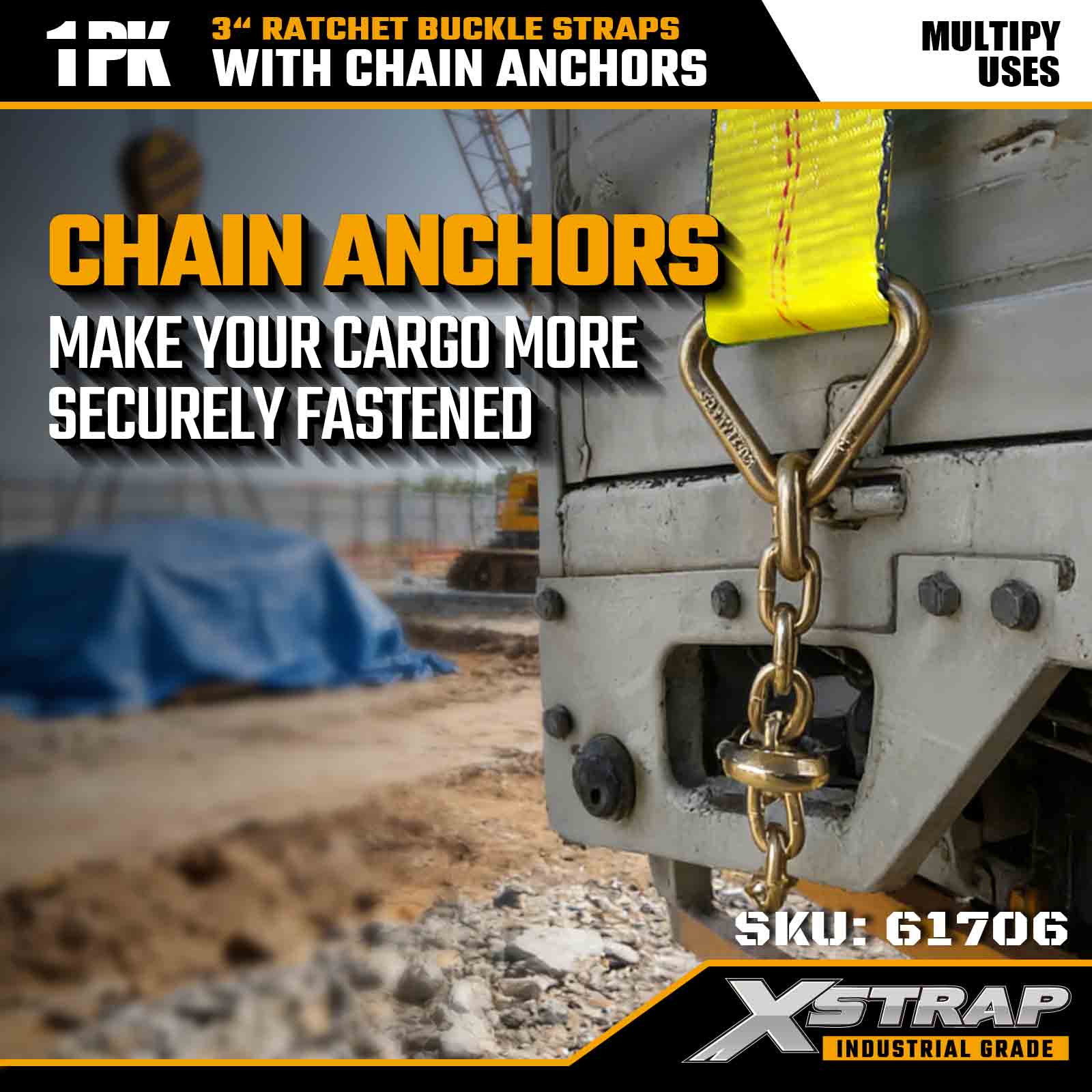 بند سگک ضامن دار 3 اینچی × 30 فوت با لنگرهای زنجیر