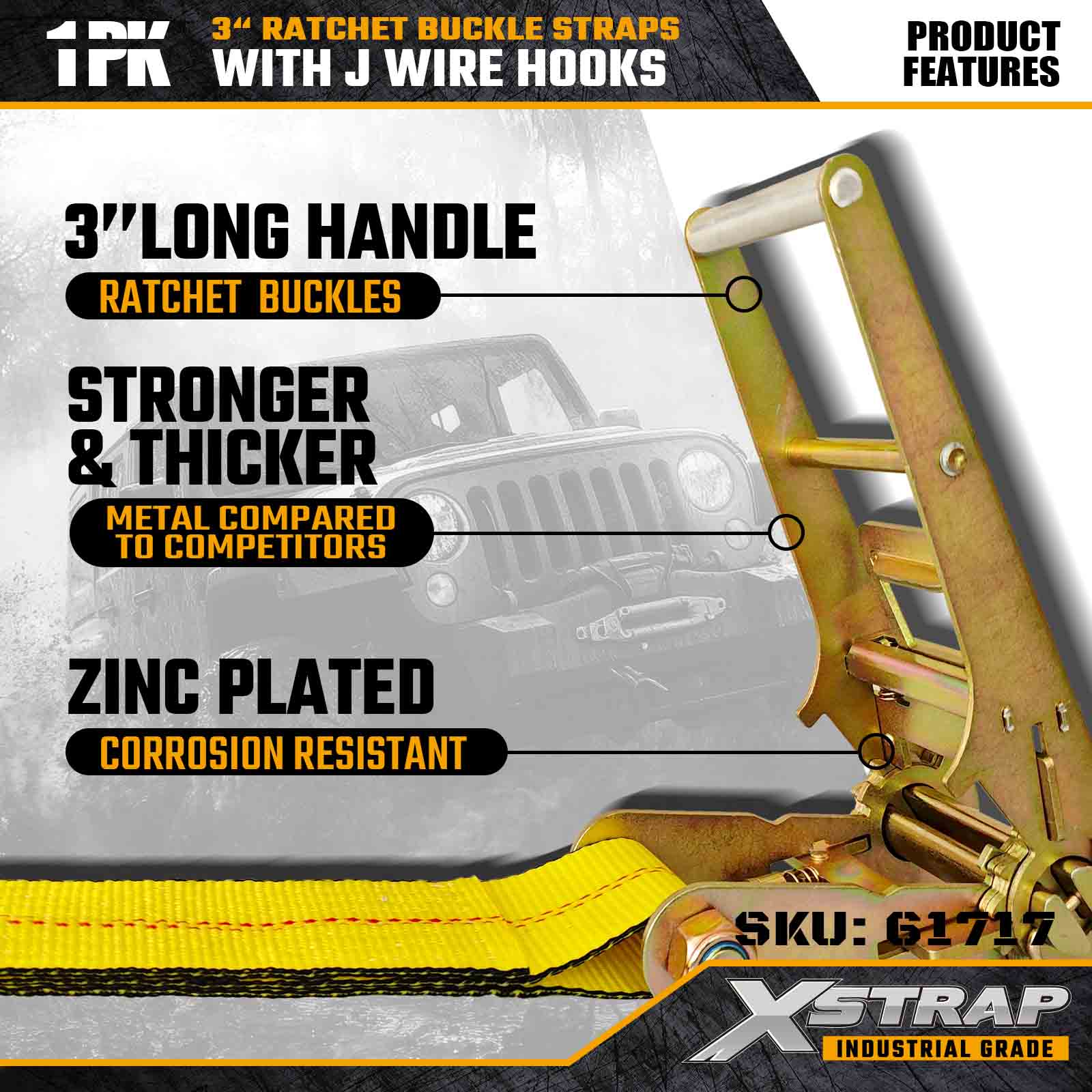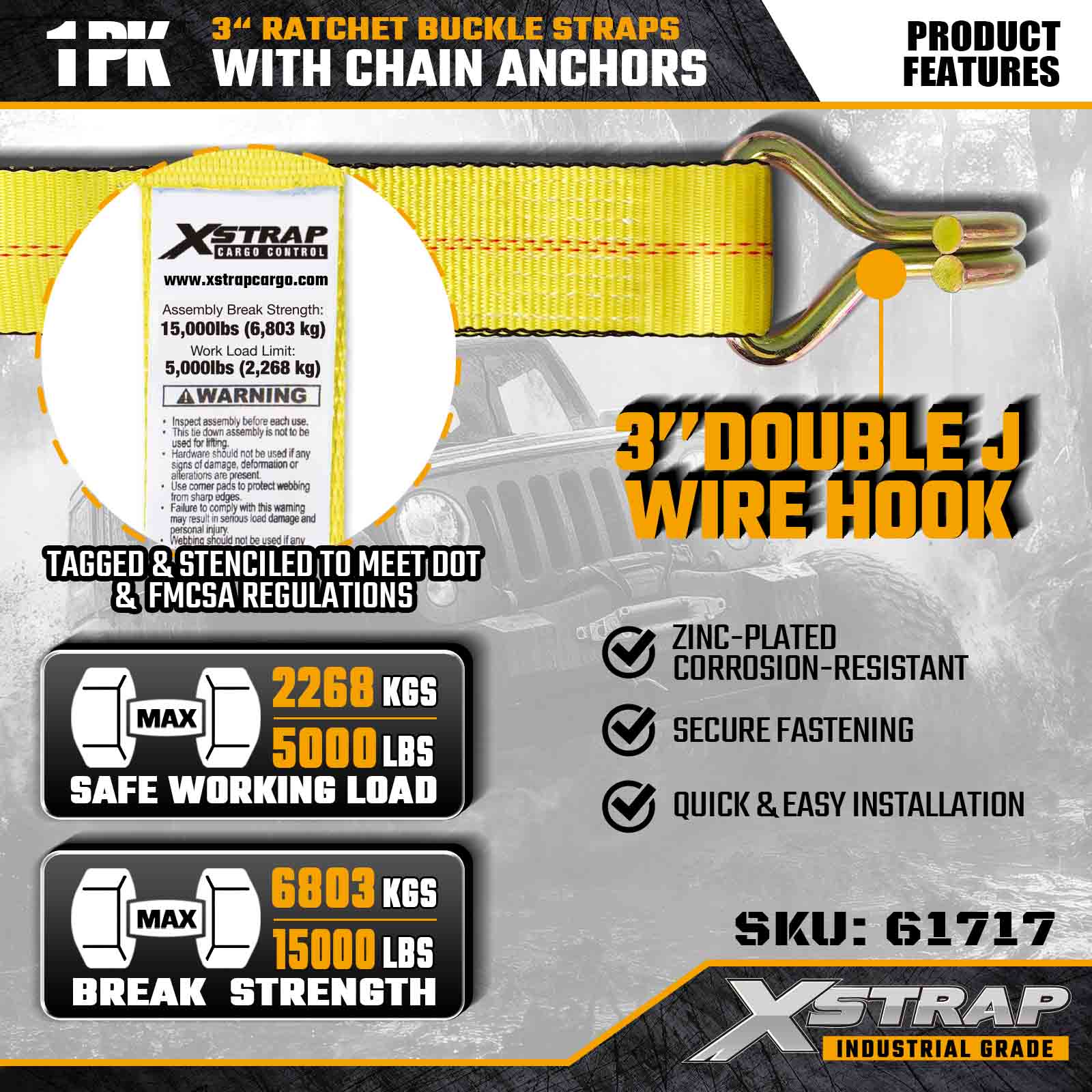 بند سگک ضامن دار 3 اینچی Xstrap 61717 (1-بسته) برای کاربردهای محموله سخت مهندسی شده است، دارای قلاب های سیمی تقویت شده و سیستم ضامن دار با فشار بالا است. با محدودیت بار کاری 5000 پوند و تجهیزات قابل اطمینان 15000 پوندی، 15000 پوند طول می کشد. حمل و نقل و لجستیک صنعتی