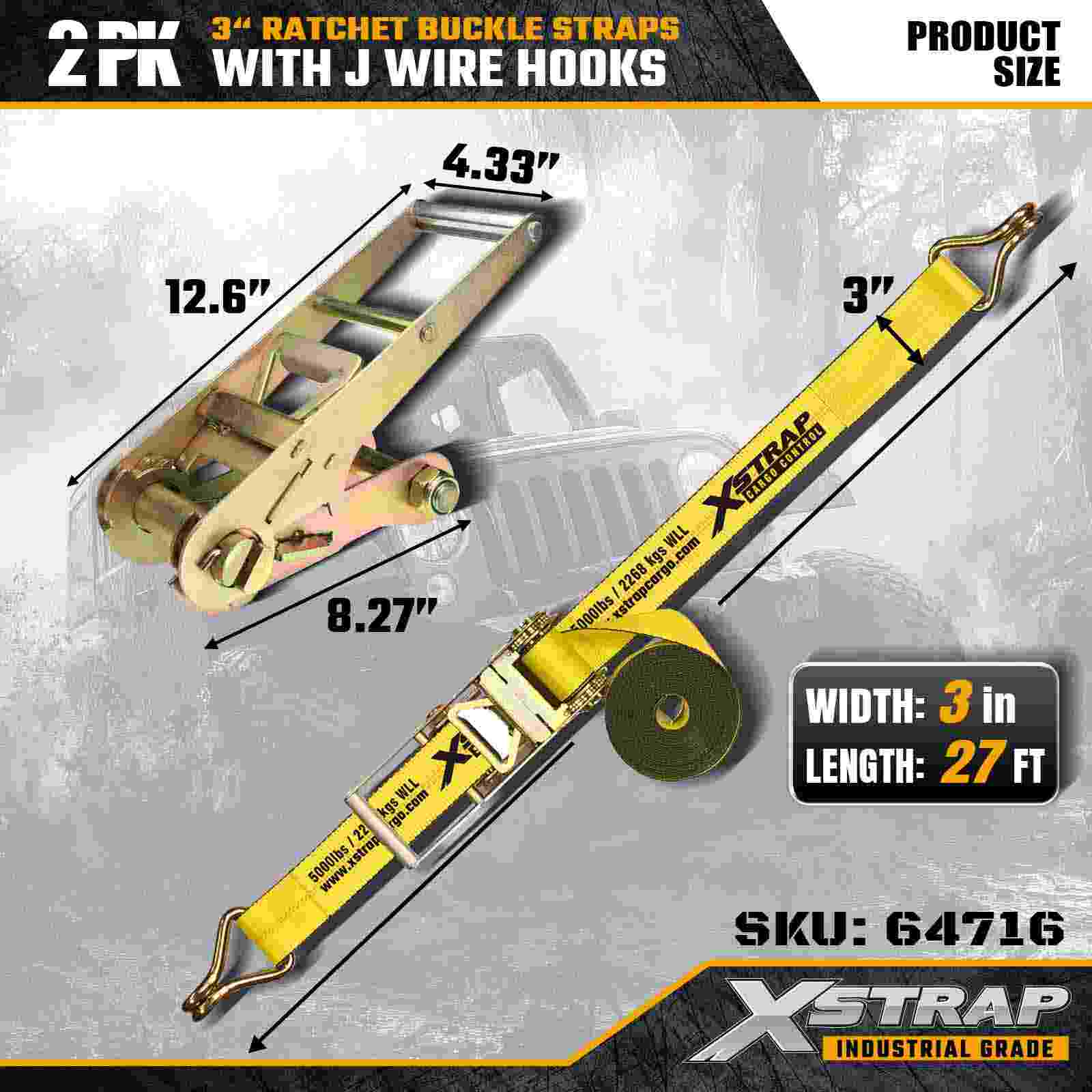 تسمه های سگک ضامن دار 3 اینچی Xstrap 64716 (2-بسته) برای ایمن سازی حرفه ای محموله طراحی شده اند، دارای قلاب های سیمی با استحکام بالا و مکانیزم ضامن دار بادوام. با محدودیت بار کاری 5000 پوندی و 15000 پوند این تجهیزات قابل تحمل برای حمل و نقل، استحکام و استحکام حمل و نقل. وظایف حمل و نقل صنعتی