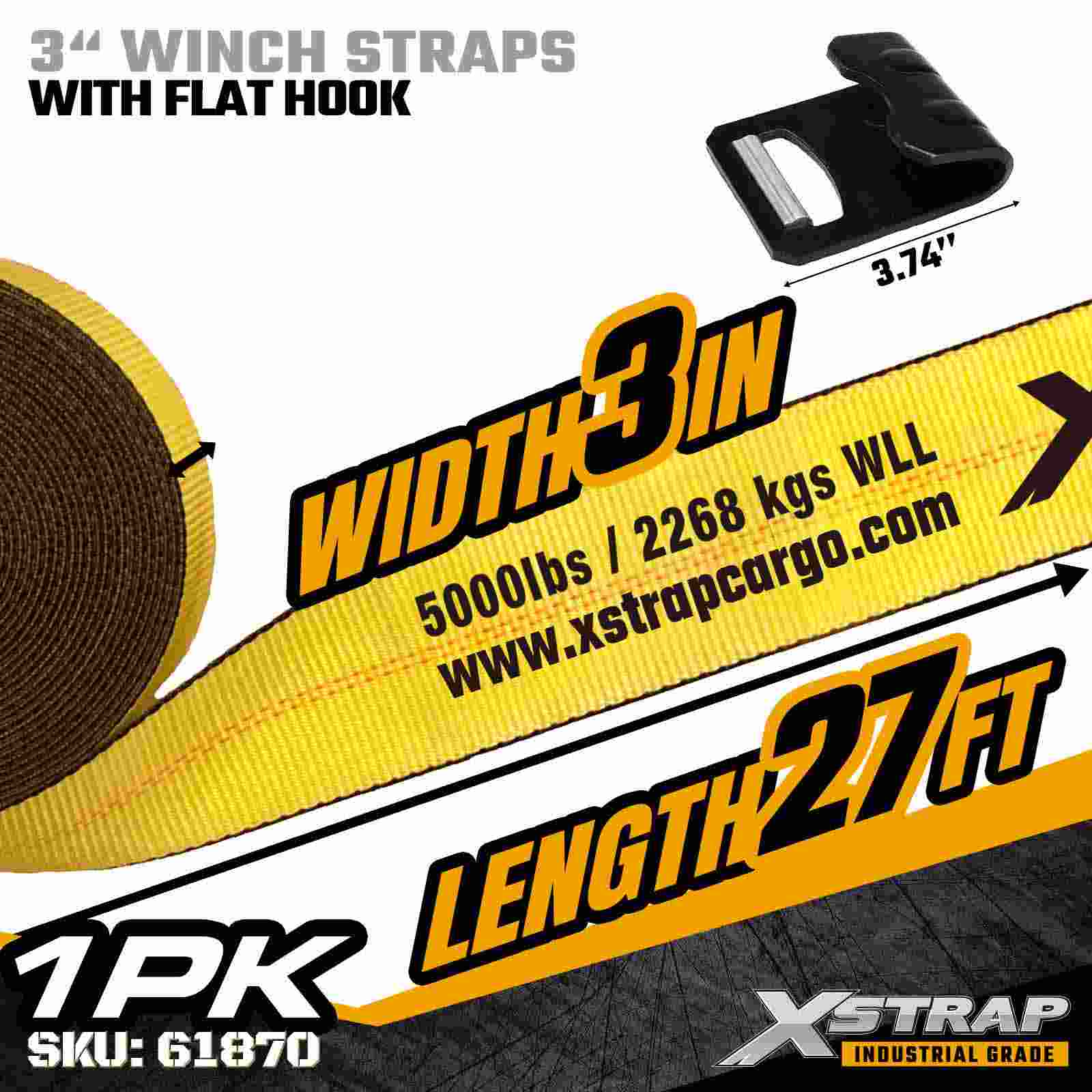 بند وینچ استاندارد 3 اینچ × 27 فوت با قلاب تخت