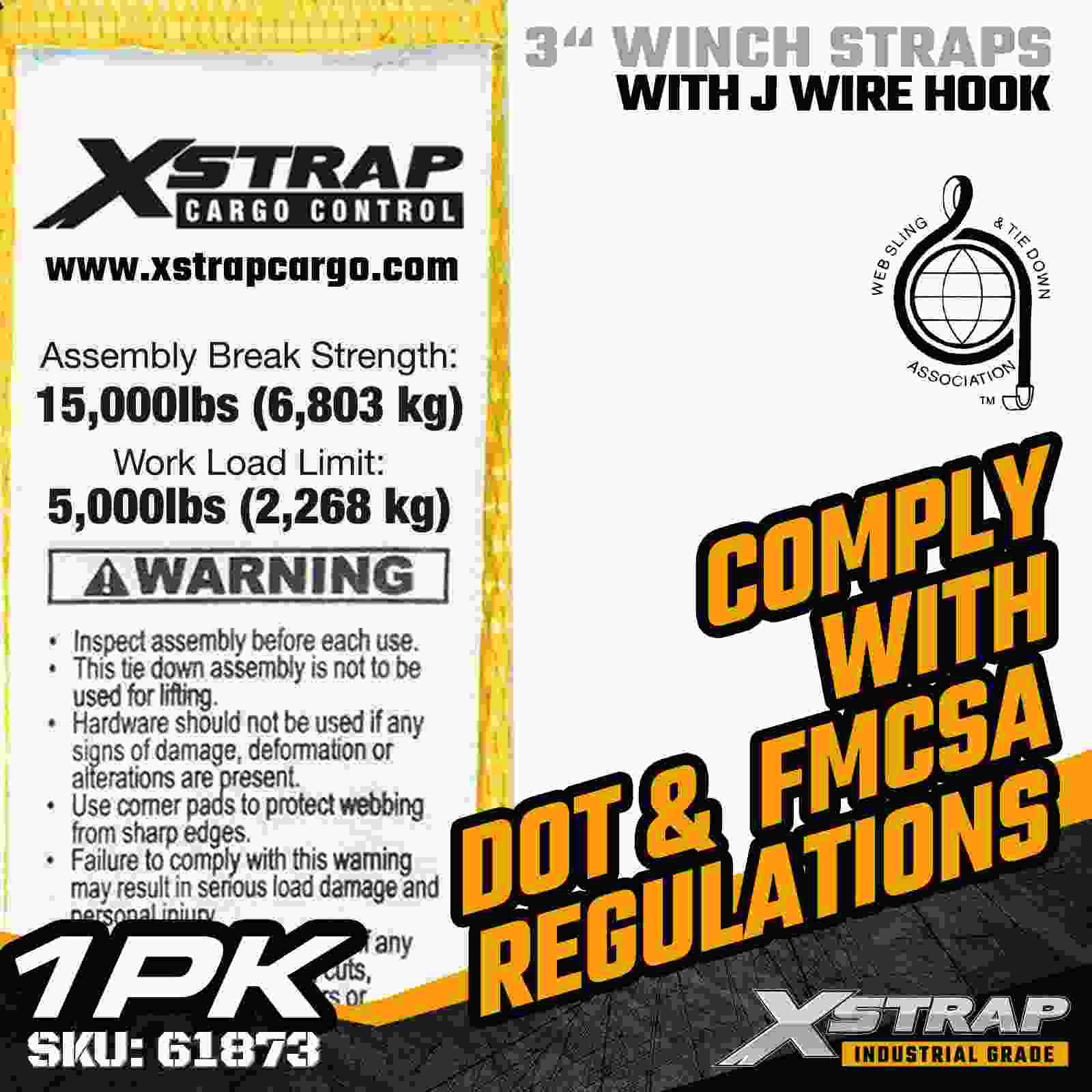 بند وینچ استاندارد Xstrap 61873 3 اینچ × 30 فوت، یک تسمه محکم برای بارهای سنگین است که برای تریلرهای تخت و باربری بزرگ طراحی شده است. این بند وینچ 3 اینچی دارای قلاب سیمی تقویتشده و بافتههای پلی استر 3 اینچی بسیار عریض است. 15000 پوند استحکام شکست طول 30 فوتی افزایش یافته دسترسی بیشتری را فراهم می کند و آن را برای محکم کردن بارهای پهن تر، بلندتر یا نامنظم که به گزینه های اتصال انعطاف پذیر نیاز دارند، ایده آل می کند.