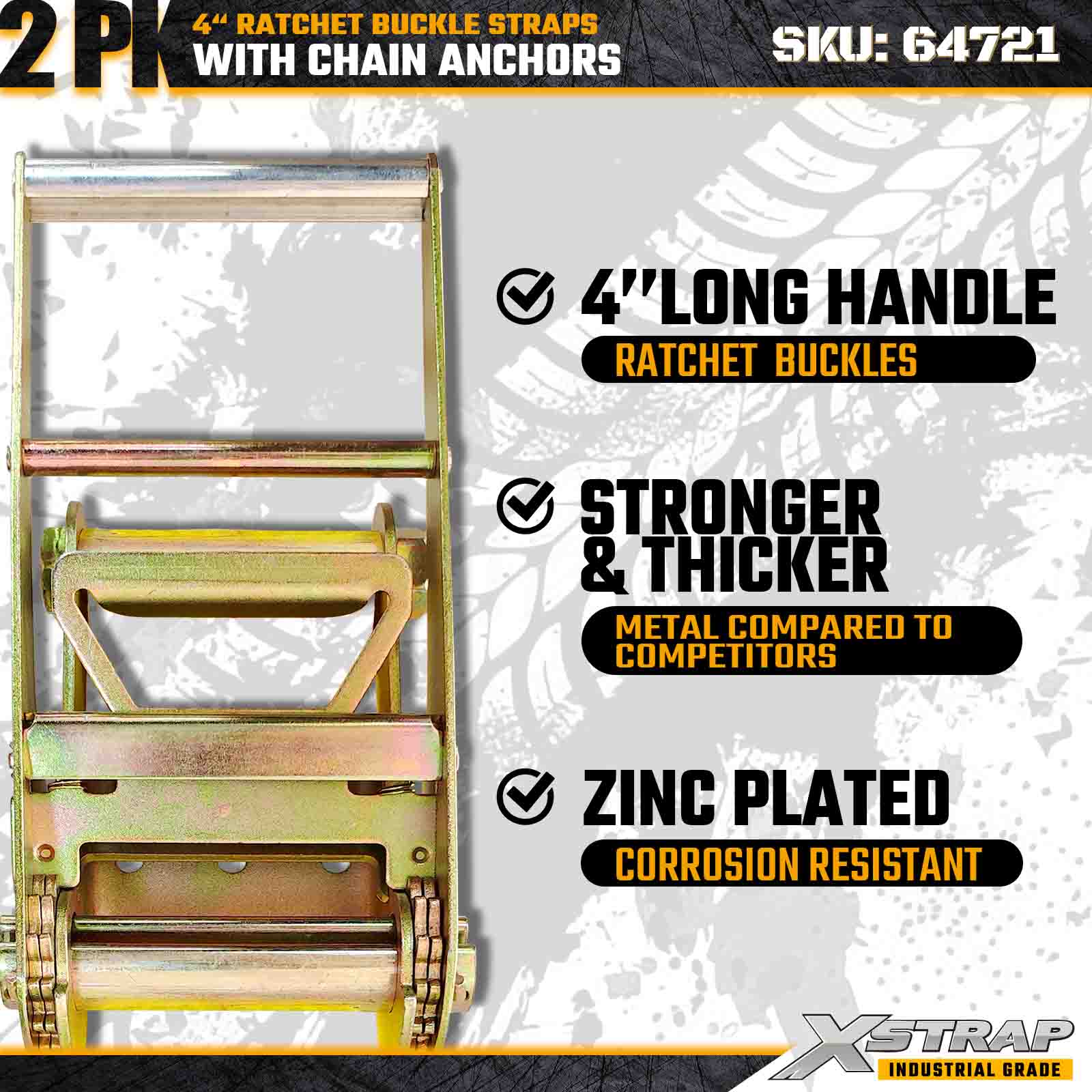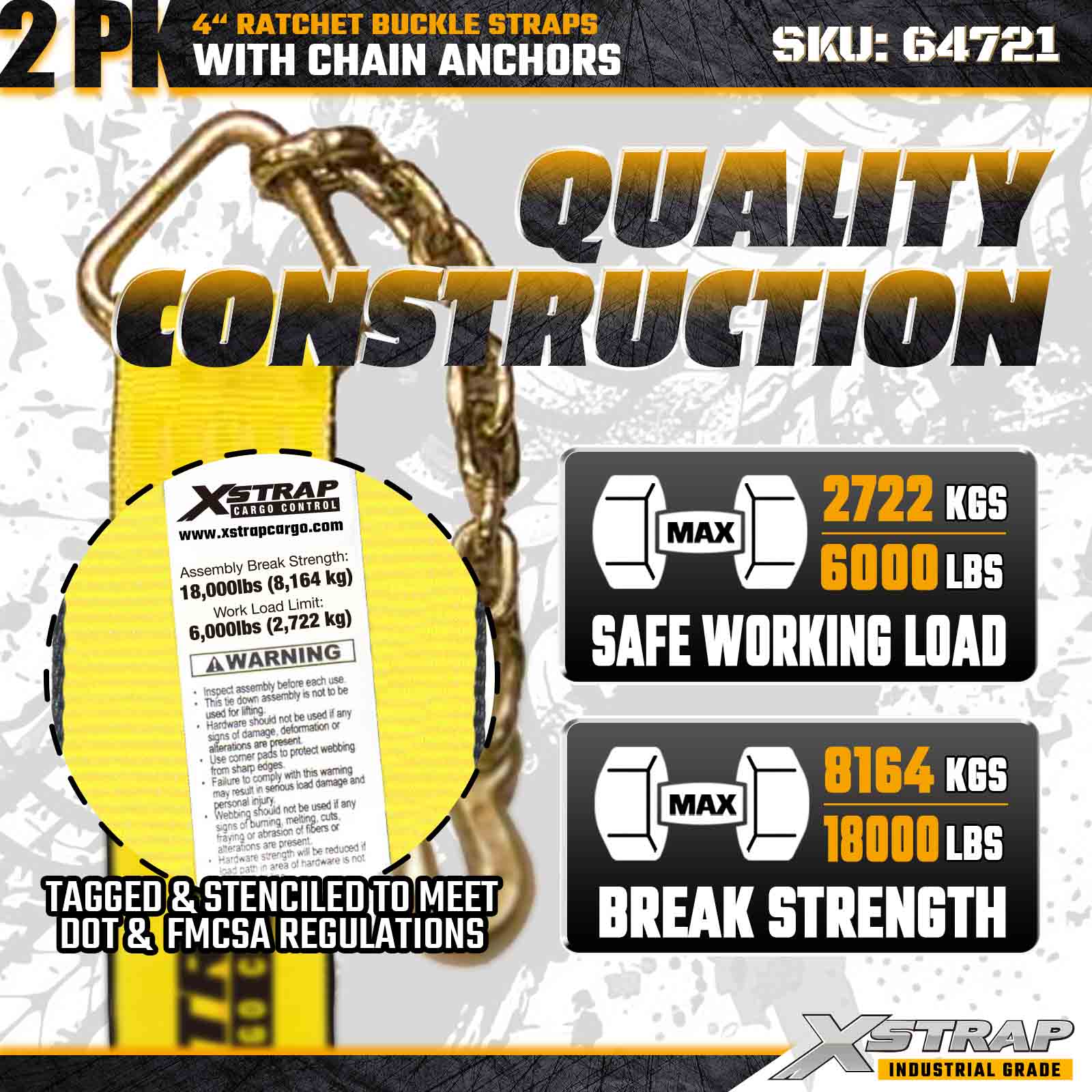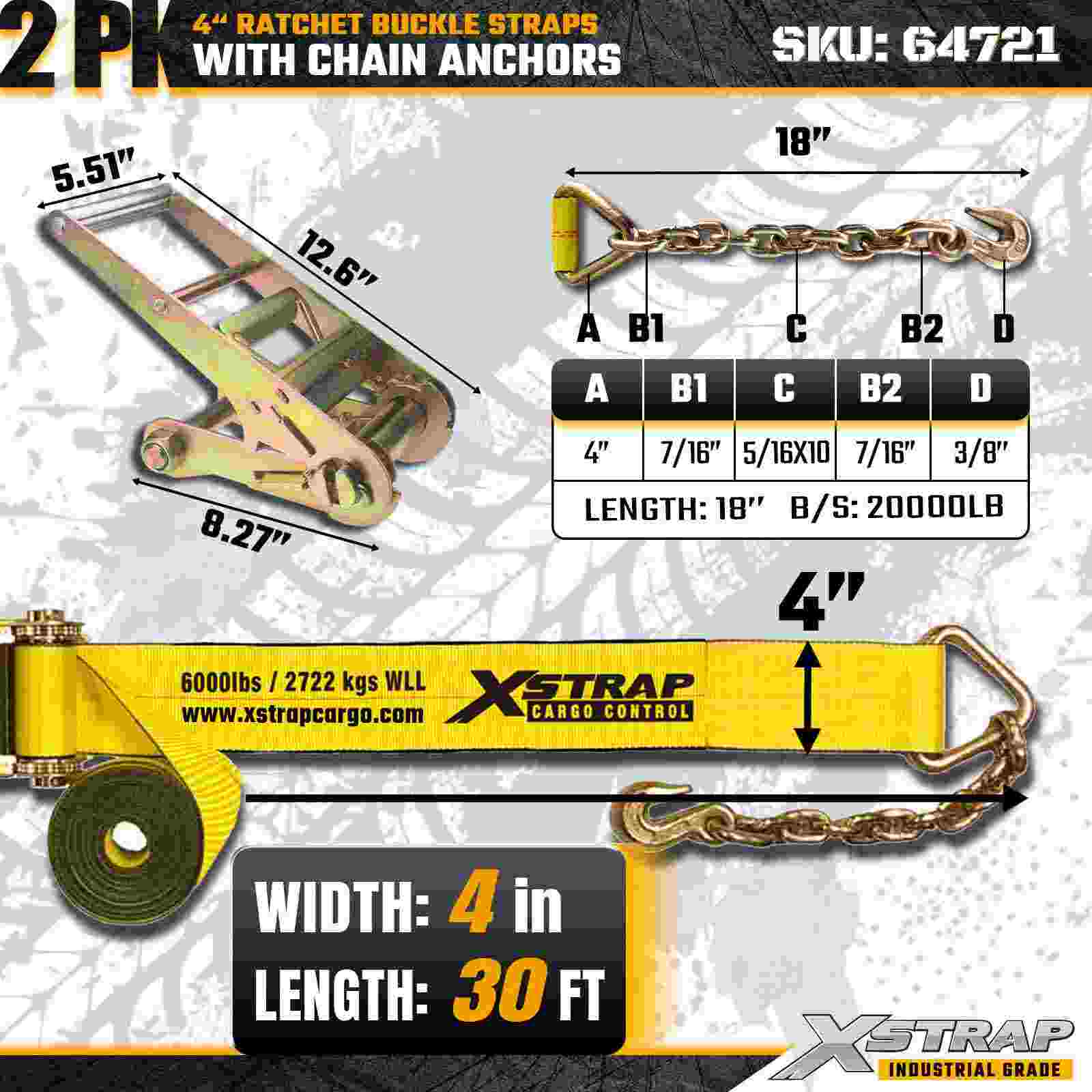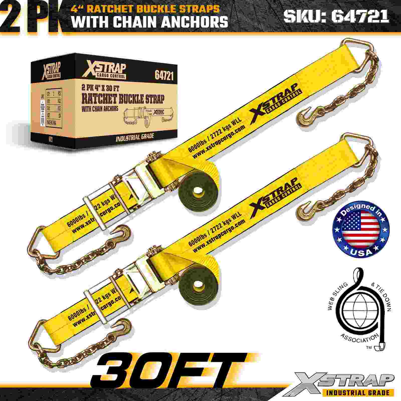 تسمه های سگک ضامن دار 4 اینچی Xstrap 64721 (2-بسته) برای ایمن سازی محموله های سنگین طراحی شده است، دارای لنگرهای زنجیری ناهموار و مکانیزم ضامن دار تقویت شده. با محدودیت بار کاری 6000 پوند و این وزن کشی ایده آل 18000 پوند است. حمل و نقل، حمل و نقل ماشین آلات، بارهای فولادی و کاربردهای محموله صنعتی که به حداکثر استحکام و قابلیت اطمینان نیاز دارند.