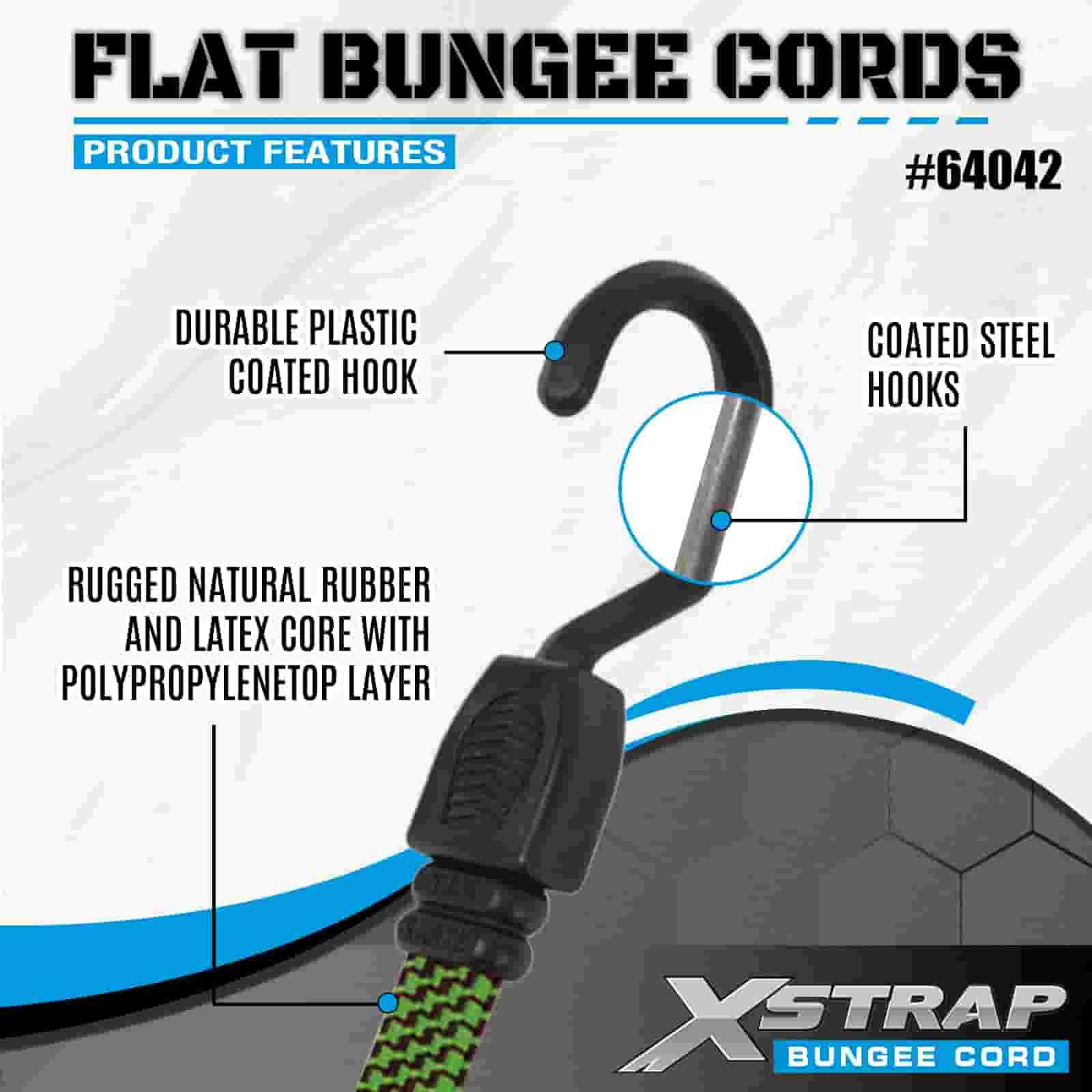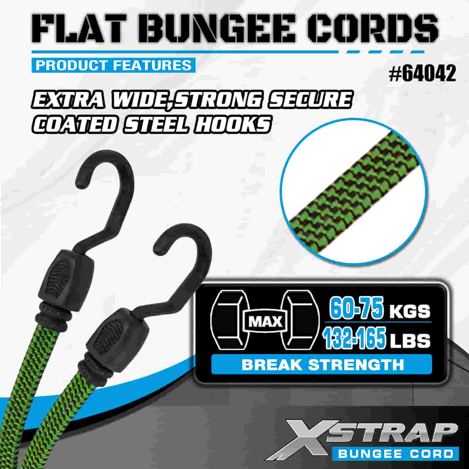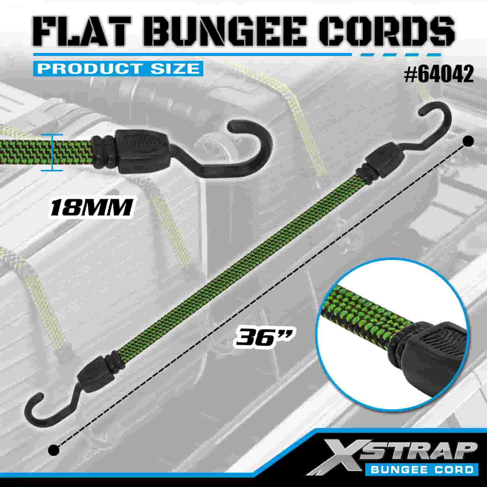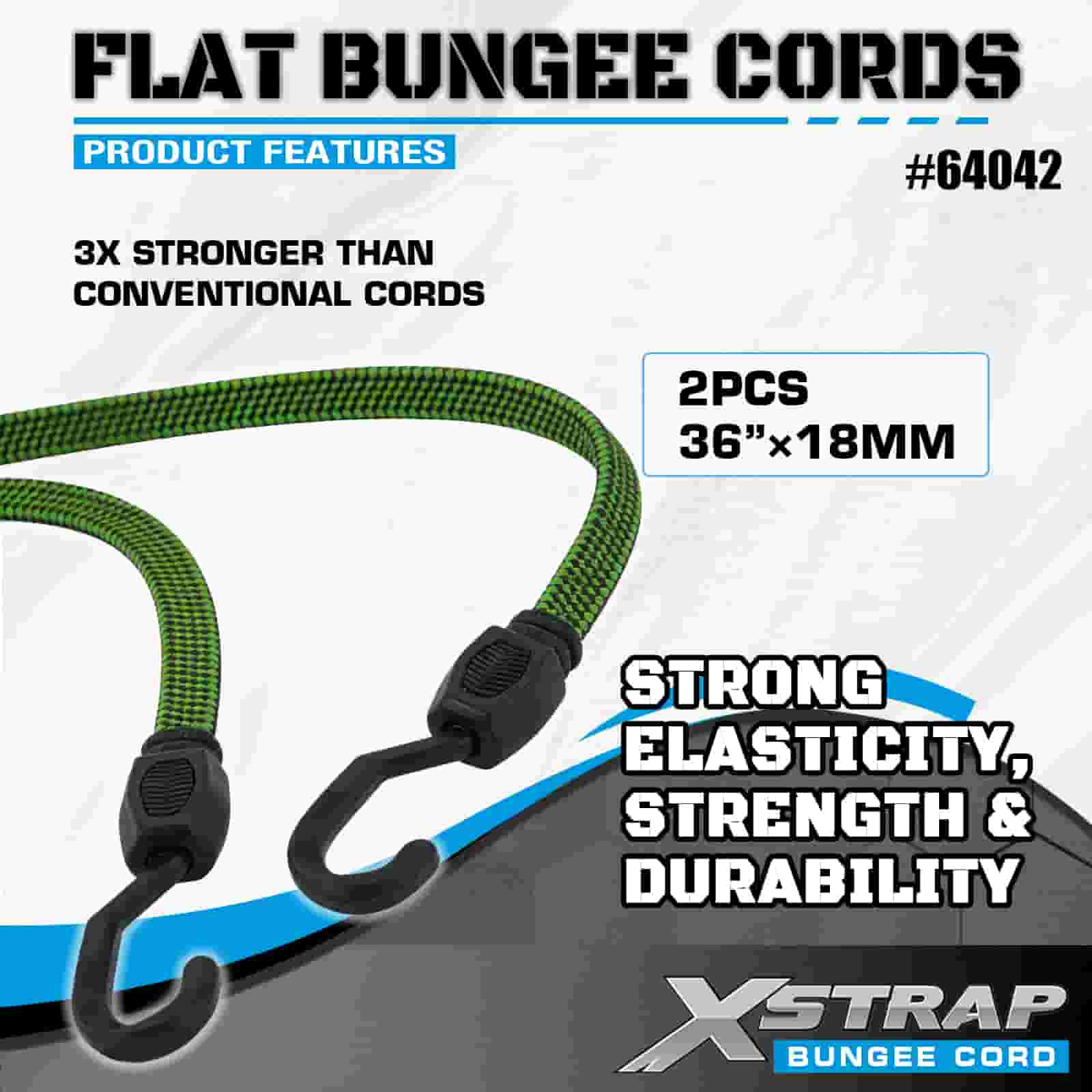 طنابهای بانجی تخت Xstrap 2PK 18 میلیمتر در 36 اینچ، قدرت شکستگی 132 تا 165 پوند با قلابهای قوی برای کنترل بار .