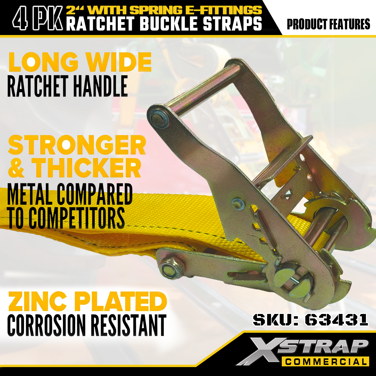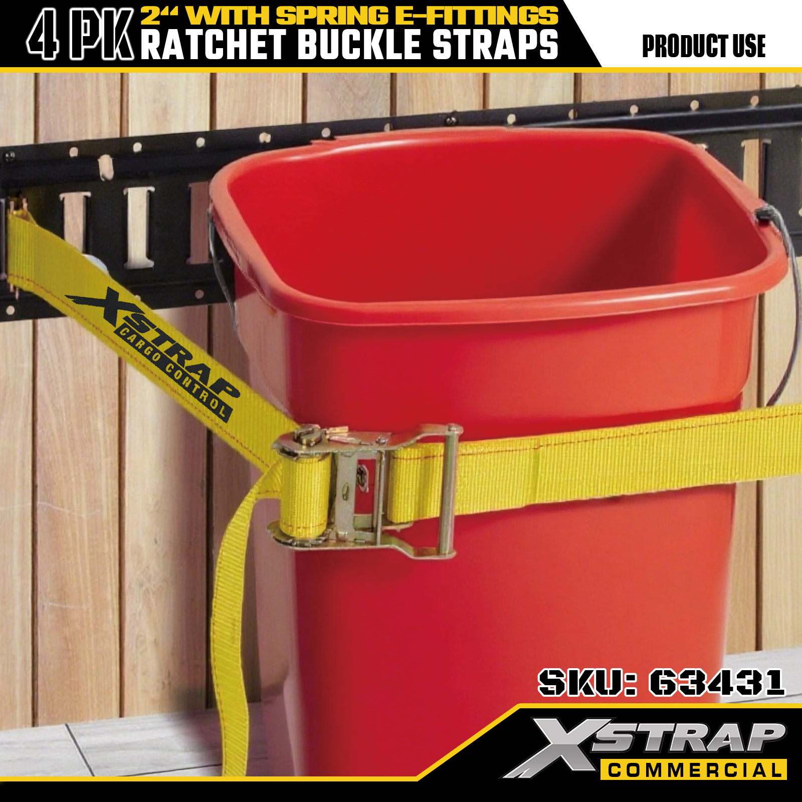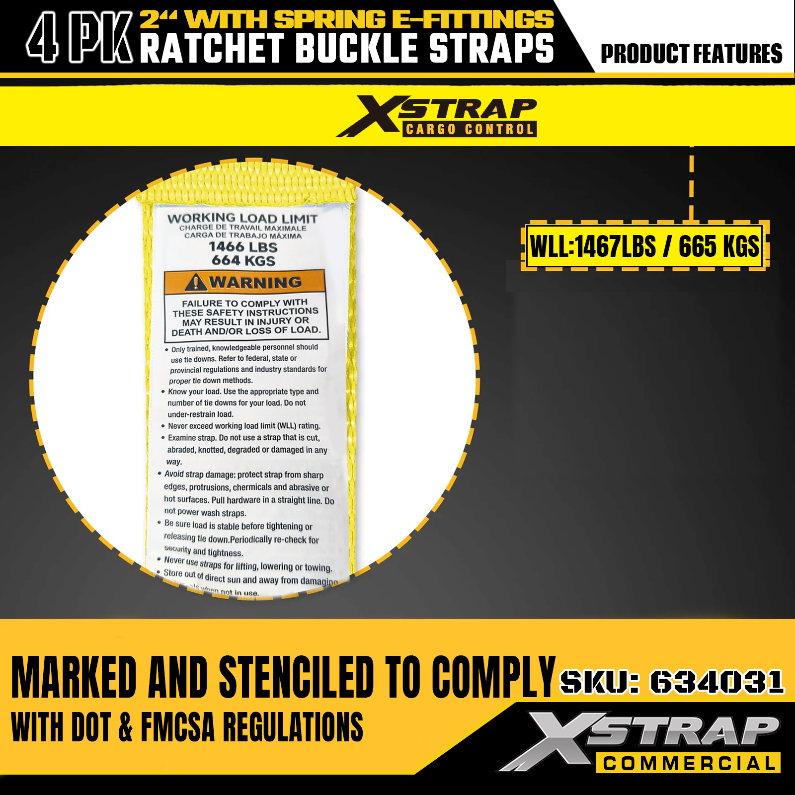 Xstrap 4 Pack Ratchet Tie-down تسمه، 2 اینچ 12 اینچ تسمه ایمن باری پلی استر، 1467 پوند بار کار ایمن و 4401 پوند استحکام شکست، با قلاب های فلزی برای کامیون، ماشین چمن زن، ATV