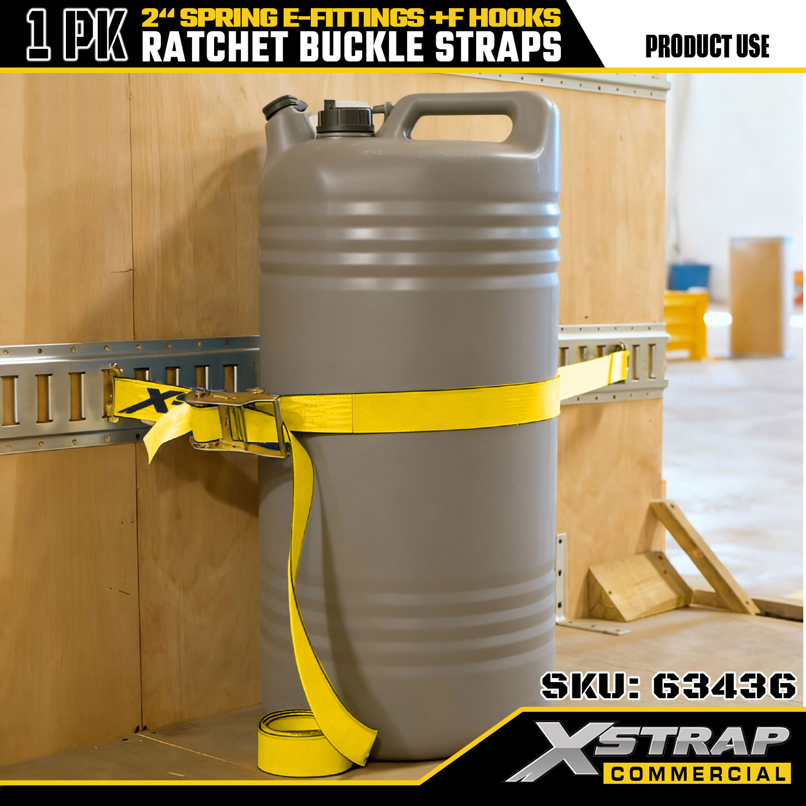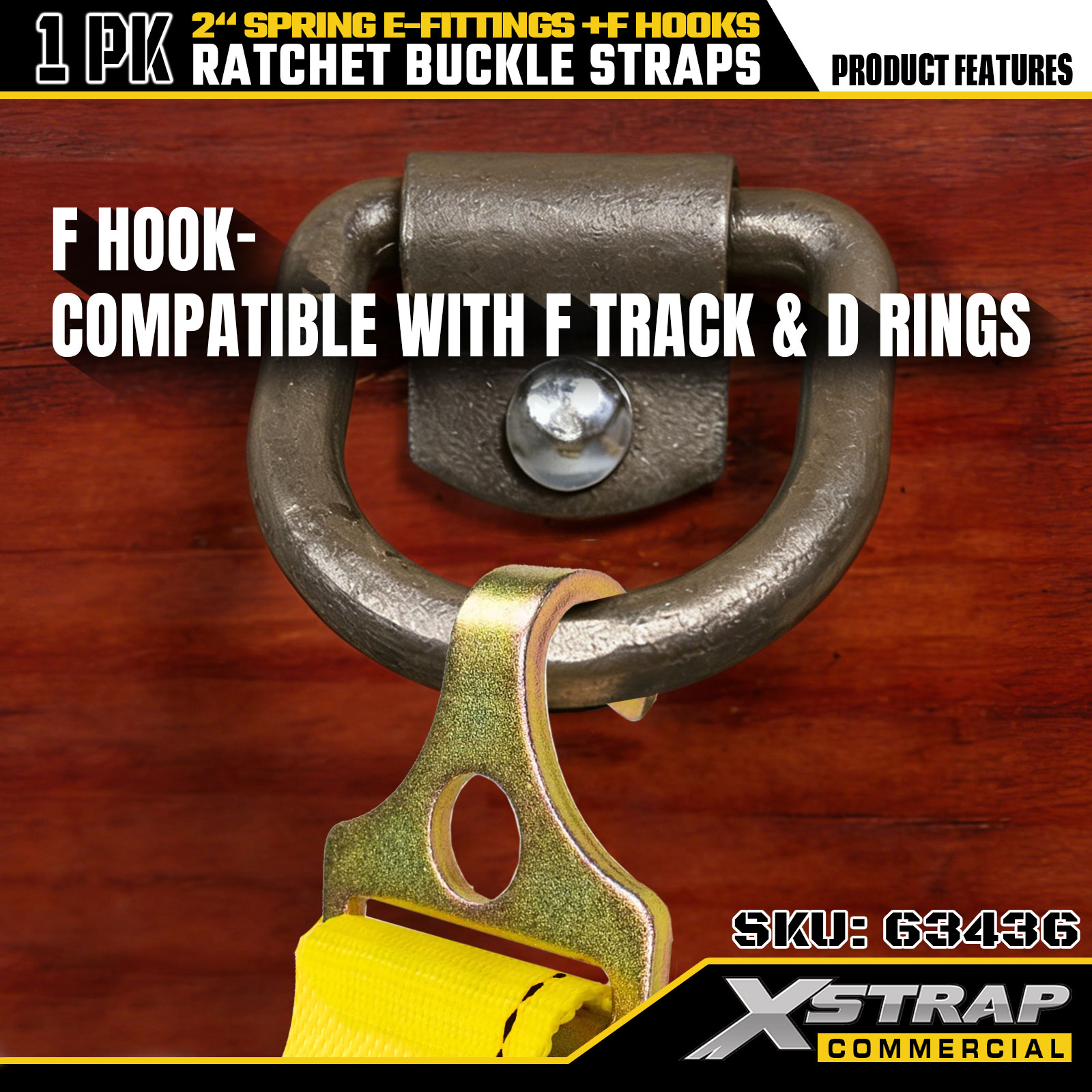 Xstrap 1-pack Tie-Down Ratchet تسمه، 2 اینچ در 12 اینچ بار سنگین با اتصالات الکترونیکی فنری و قلاب های F (زرد)، ظرفیت 733 پوند برای ایمن سازی تریلر، کامیون، وانت و موتور سیکلت