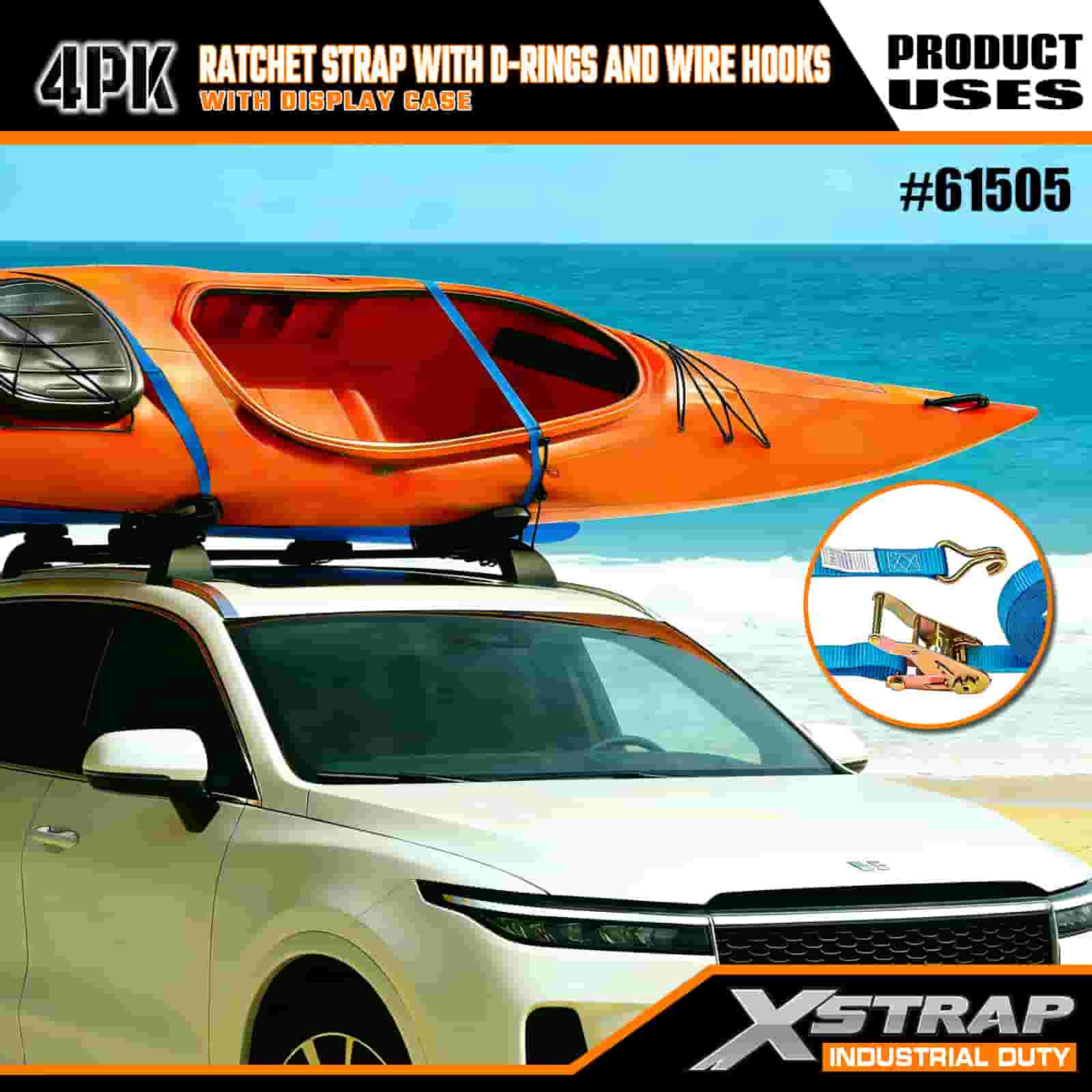 - بسته 4 تایی کاربردی با جعبه نمایشگر: در یک مجموعه 4 تایی (با بسته بندی نمایشگر) برای استفاده دسته ای فروخته می شود، و هر بند دارای ابعاد 1 اینچ عرض × 15 فوت طول است—ایده آل برای ایمن کردن اقلامی مانند کایاک، وسایل در فضای باز، یا محموله های سنگین.