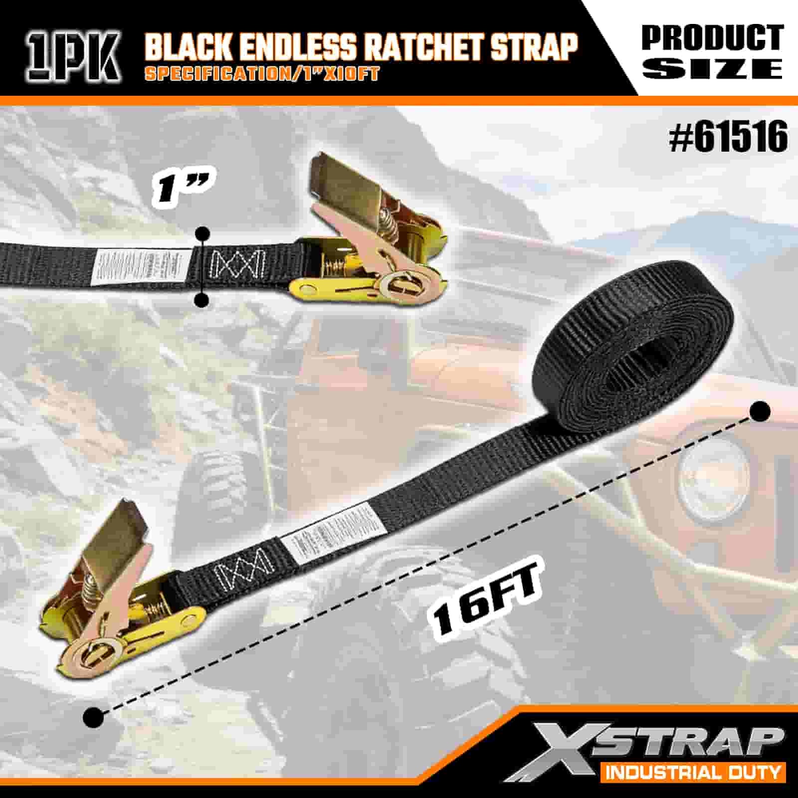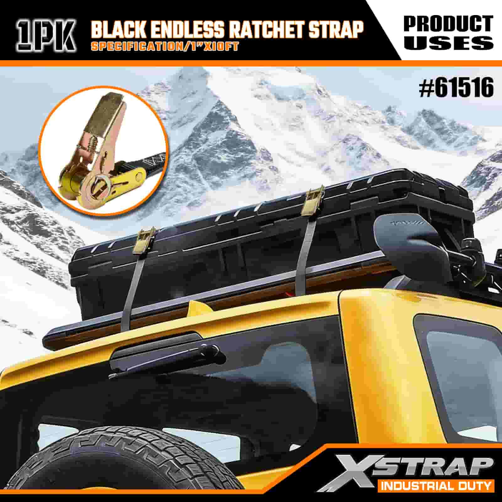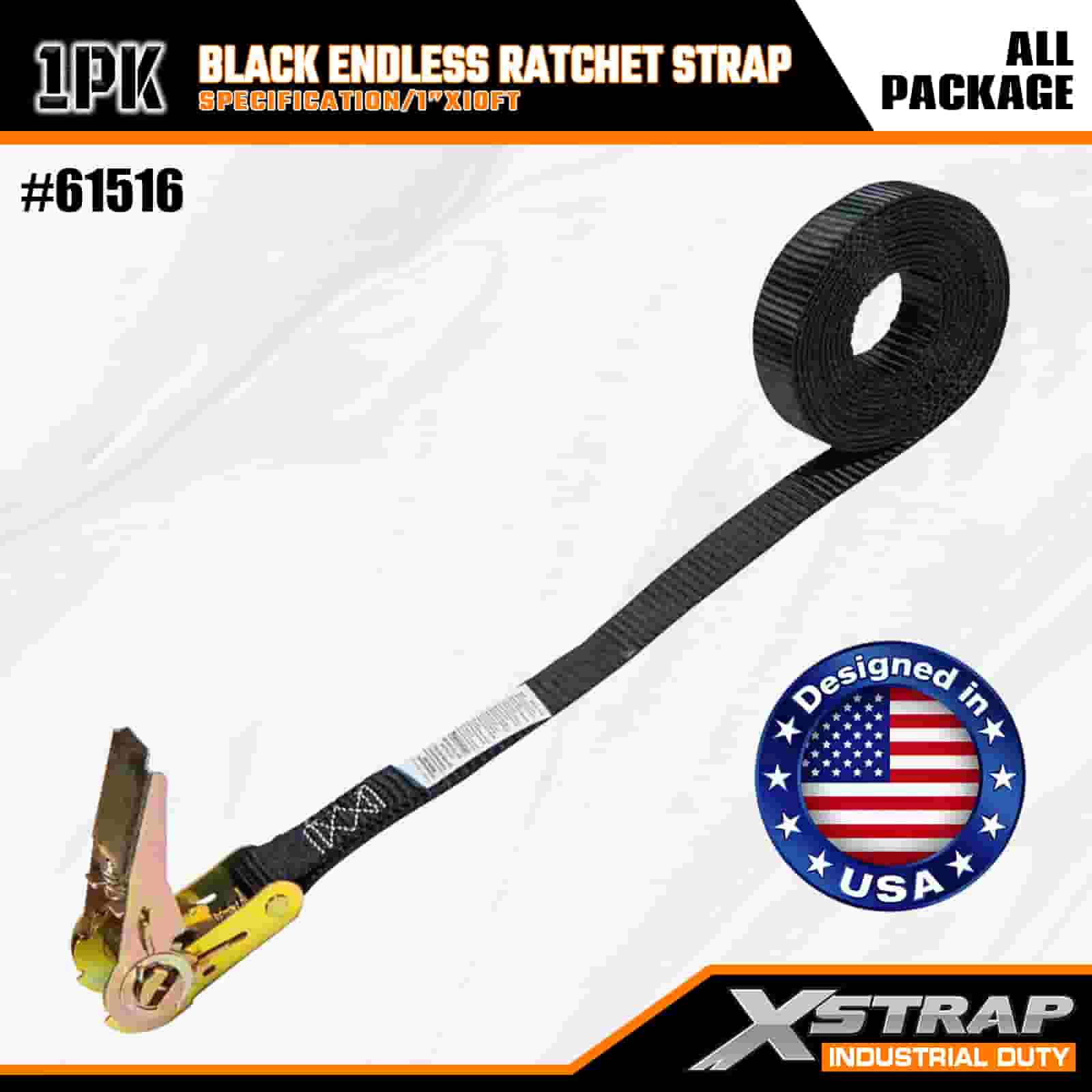 تسمه ضامن دار بی پایان مشکی Xstrap، بند تسمه ضامن دار بندکشی پلی استر 1 اینچی × 10 اینچی، تسمه های محکم بندکشی باری با ظرفیت 500 پوند برای تریلر باری ایمن حرفه ای، تریلر تخت تخت، قایق اسکی، ماشین کوچک.