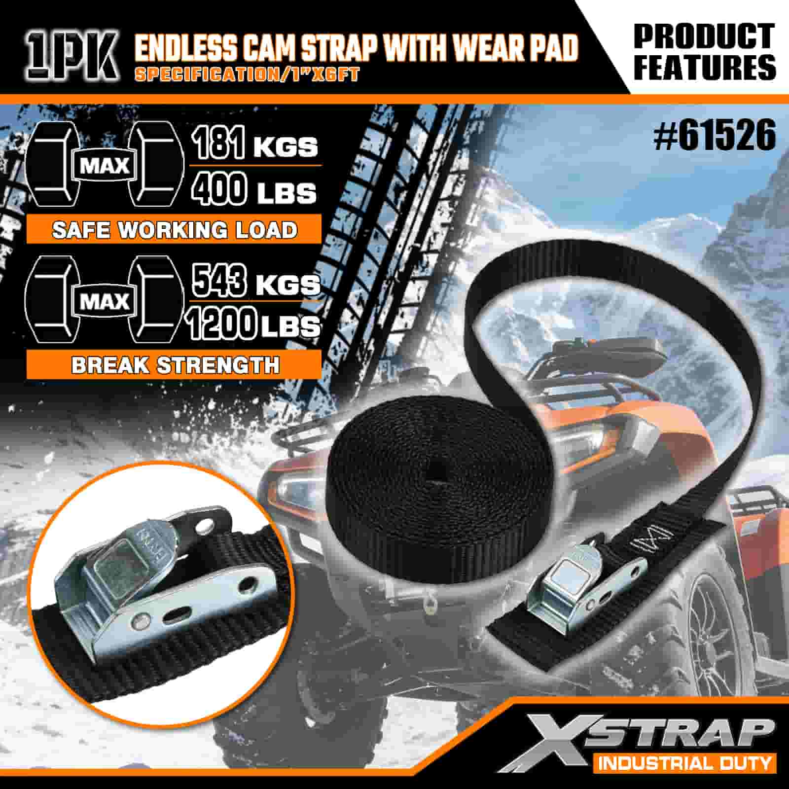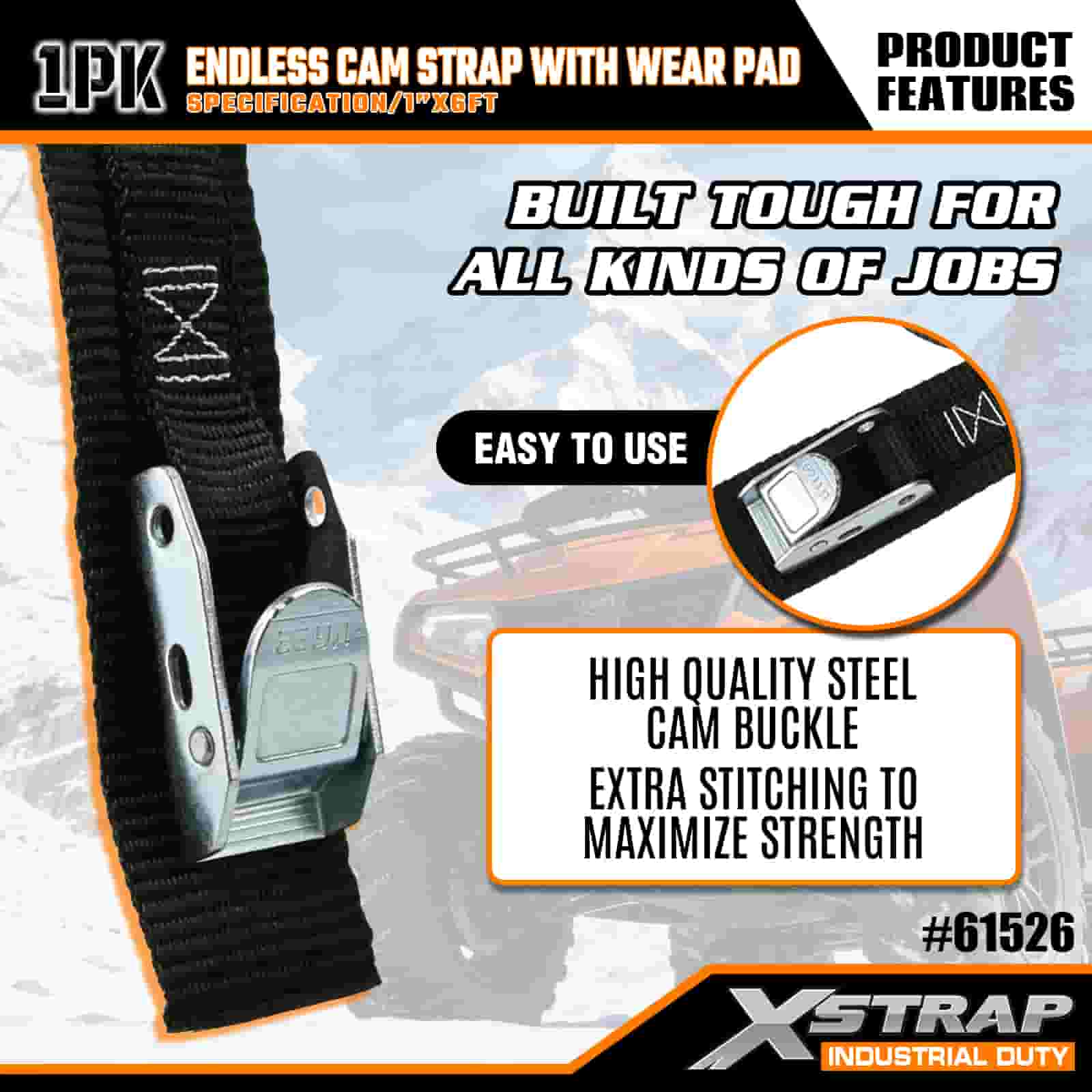 بند بادامک بی پایان Xstrap با پد سایشی، بند بند سگک بادامک کششی 1 اینچی 6 اینچی پلی استر، تسمه های محکم بندکشی باری با ظرفیت 400 پوند برای تریلر باری ایمن حرفه ای، تریلر تخت تخت، قایق اسکی، ماشین کوچک.