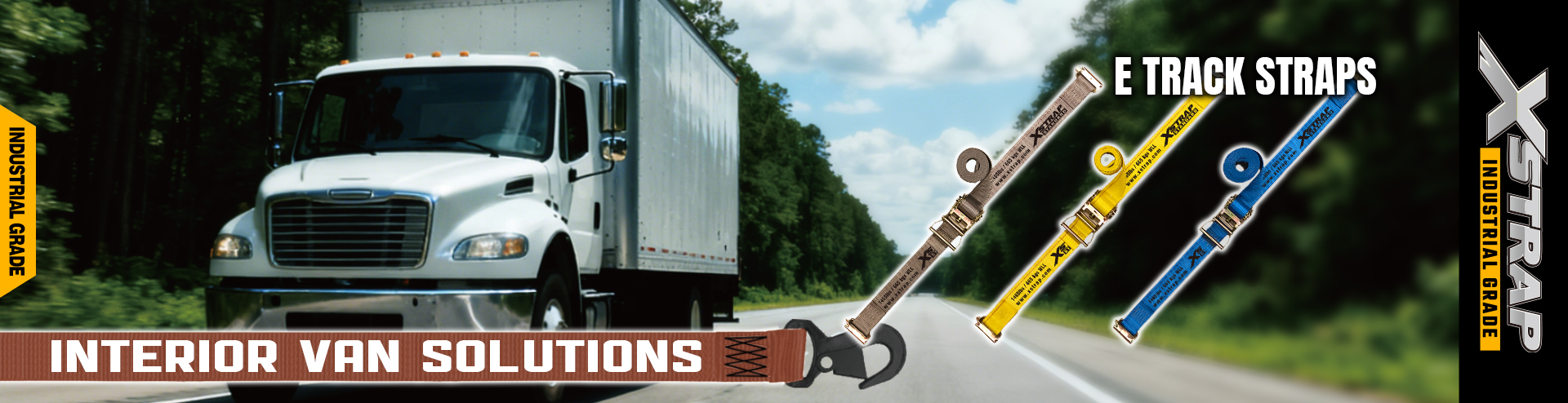 E Track Straps work in conjunction with the E-Track Rail System installed inside the cargo van or trailer.