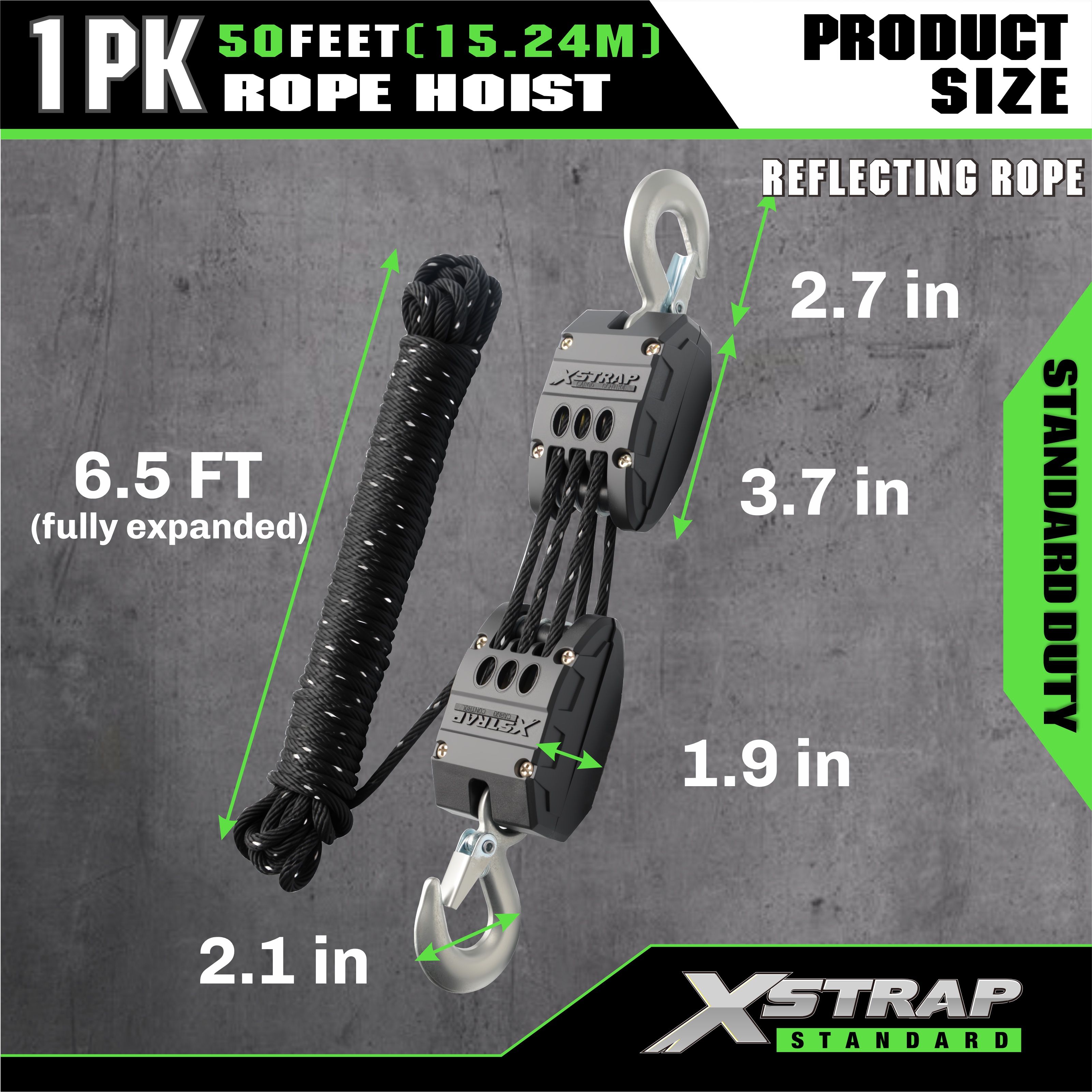 سیستم قرقره بالابر طناب سیاه بازتابنده XSTRAP AHLT0003 1000LB