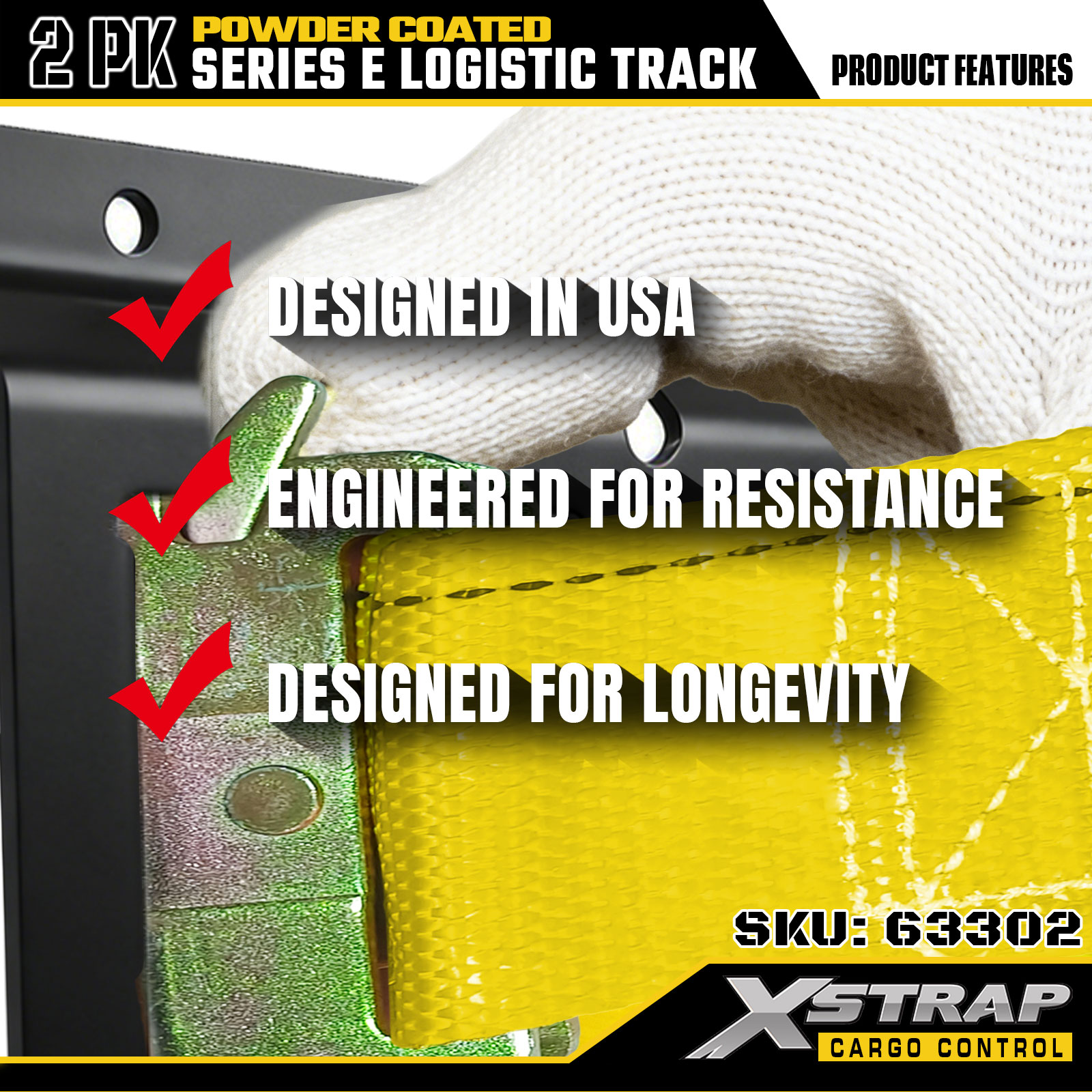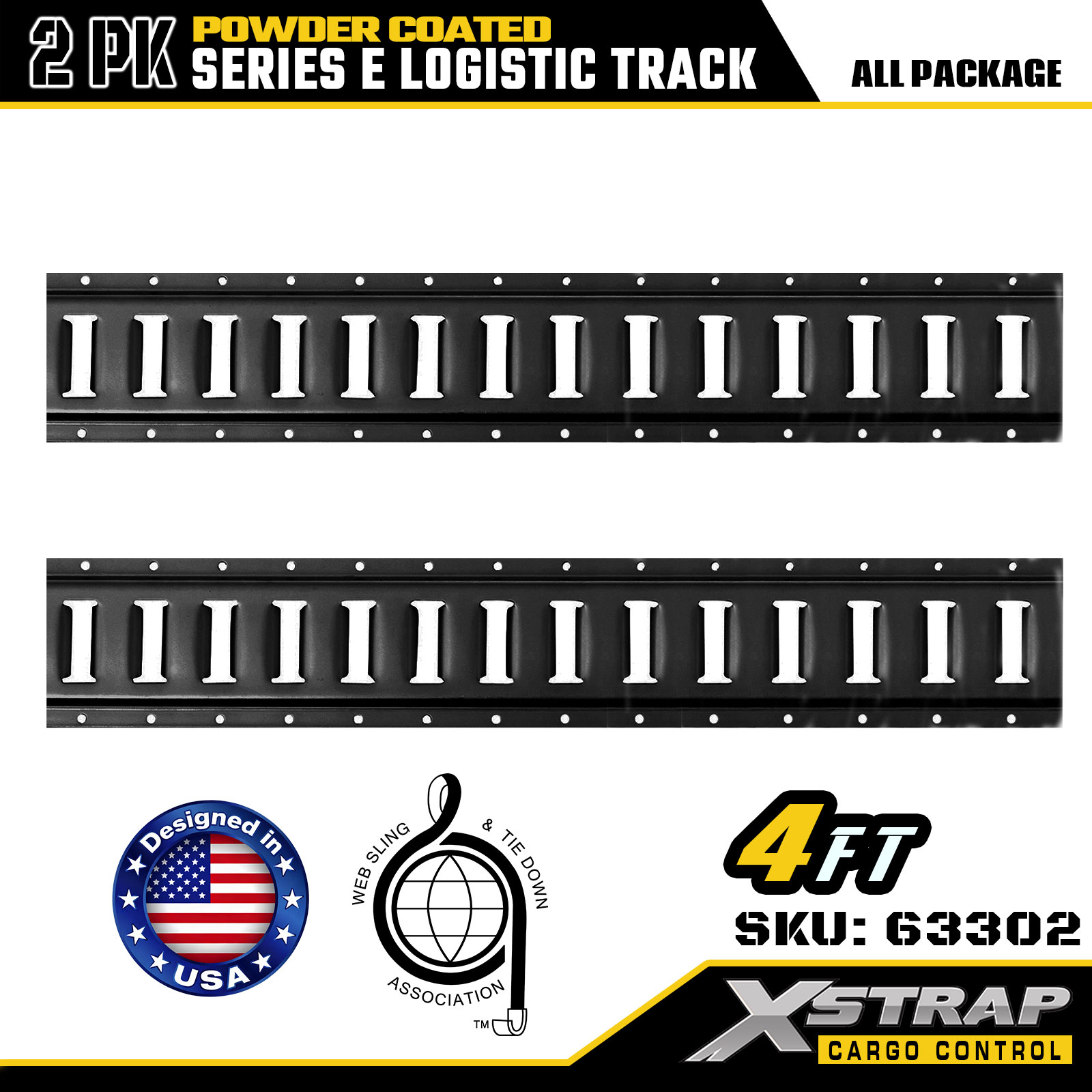 مسیر لجستیک Xstrap 63302 4 فوت خاکستری E - فولاد 12 گیج با پوشش پودری، ظرفیت 6000 LBS، 2PK برای کنترل بار