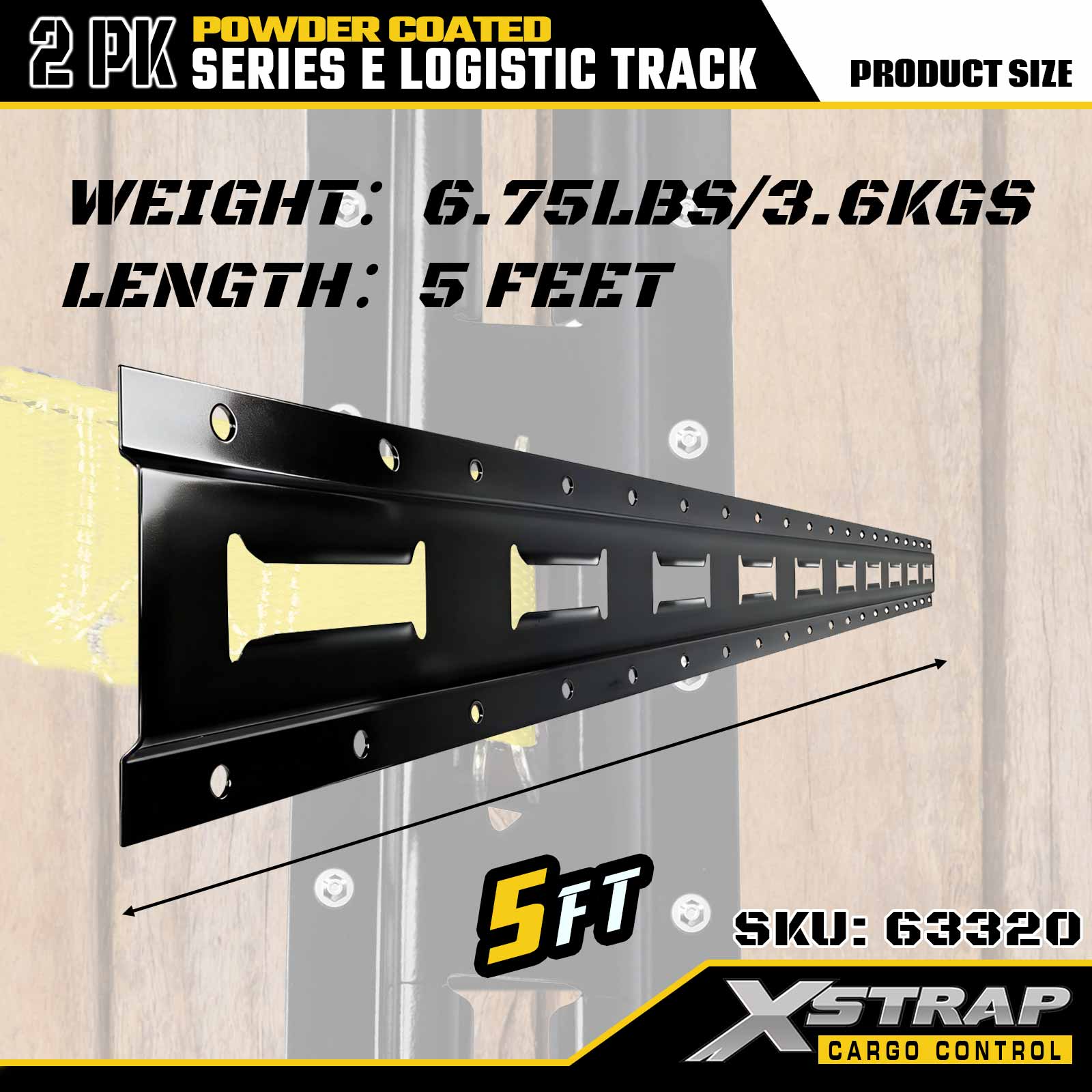 Xstrap 63320 5 ' ریل لجستیک خاکستری E-Type - فولاد 12 گیج با پوشش پودری، ظرفیت بار 6000 LBS، 2PK برای مهار بار