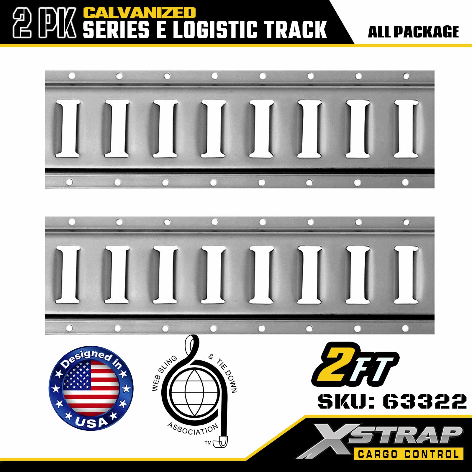 Xstrap 63322 ریل باری E-Type نقره ای آبکاری شده 2 فوت - فولاد 12 گیج با پوشش گالوانیزه، رتبه بار 6000 LBS، 2PK برای