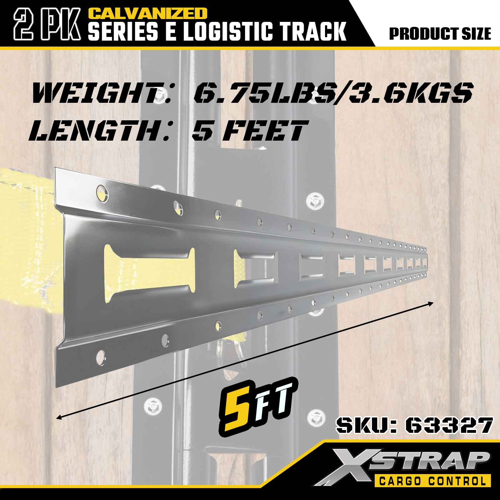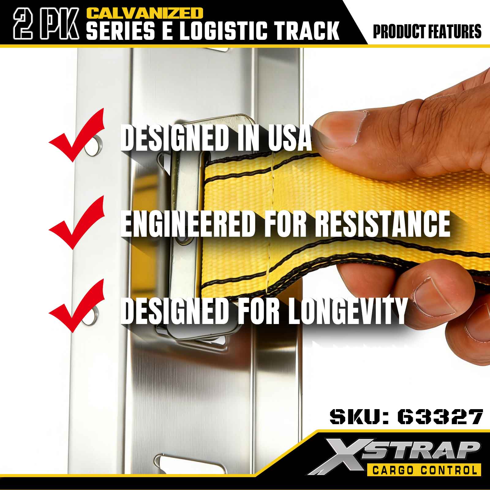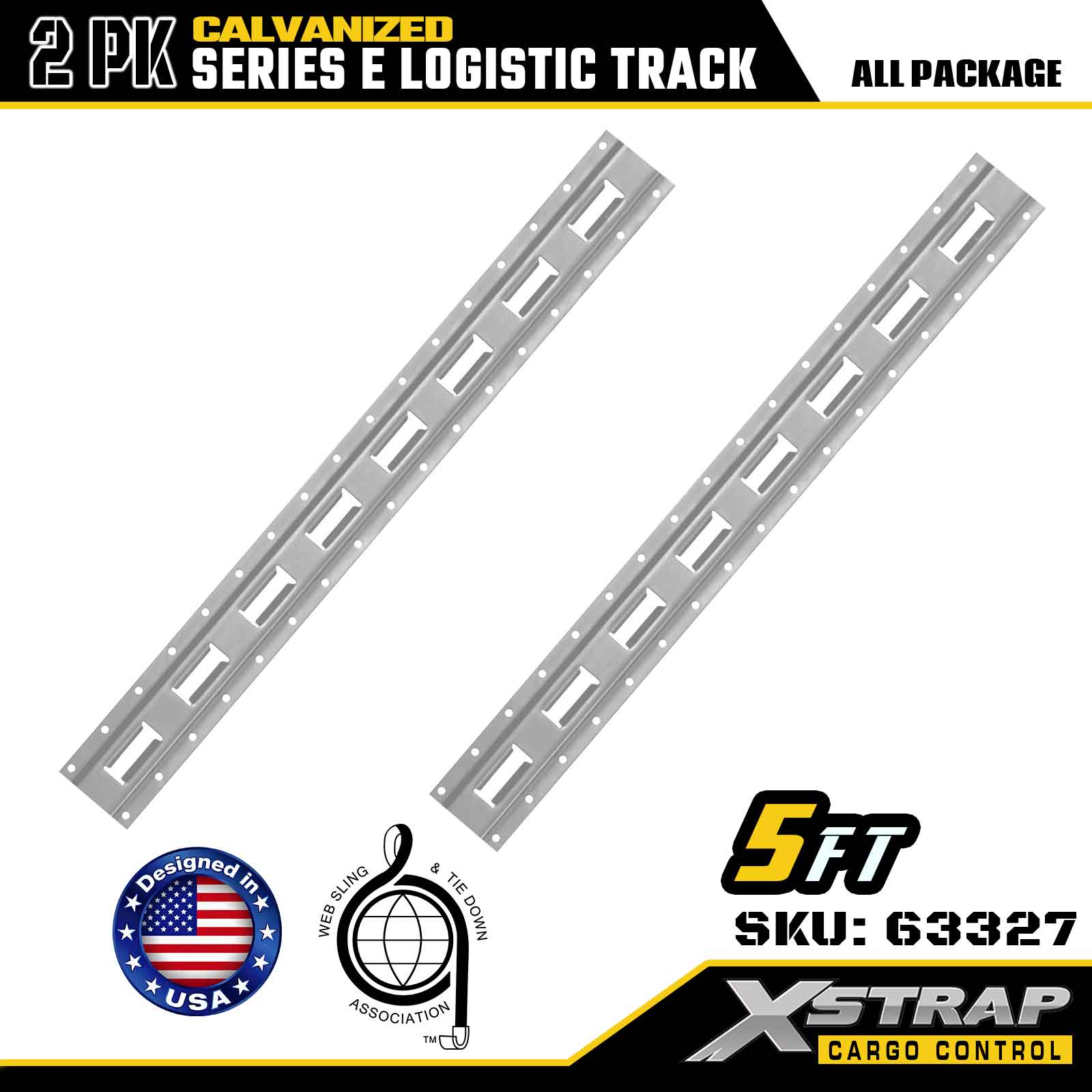 ریل باربری E-Track نقره ای آبکاری شده 5 فوتی Xstrap 63327 - فولاد 12 گیج با گالوانیزه گرم، ظرفیت وزن 6000 LBS، بسته 2 برای ایمن سازی بار