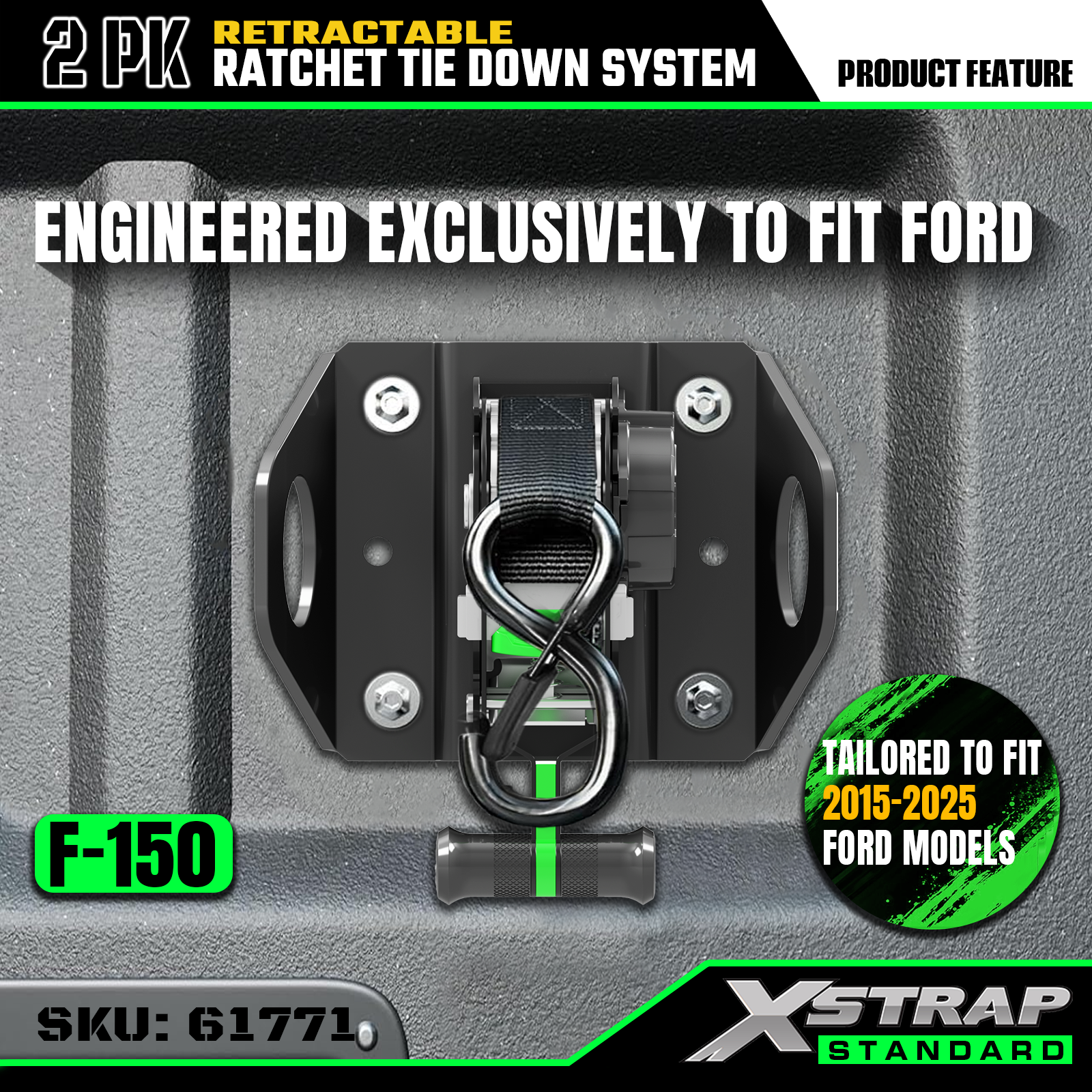 این بند کشی Xstrap است که برای F150 2015-2026 فورد با قلاب های Safety S مناسب است. بار کار ایمن 500 پوند است و قدرت شکست 1500 پوند است.