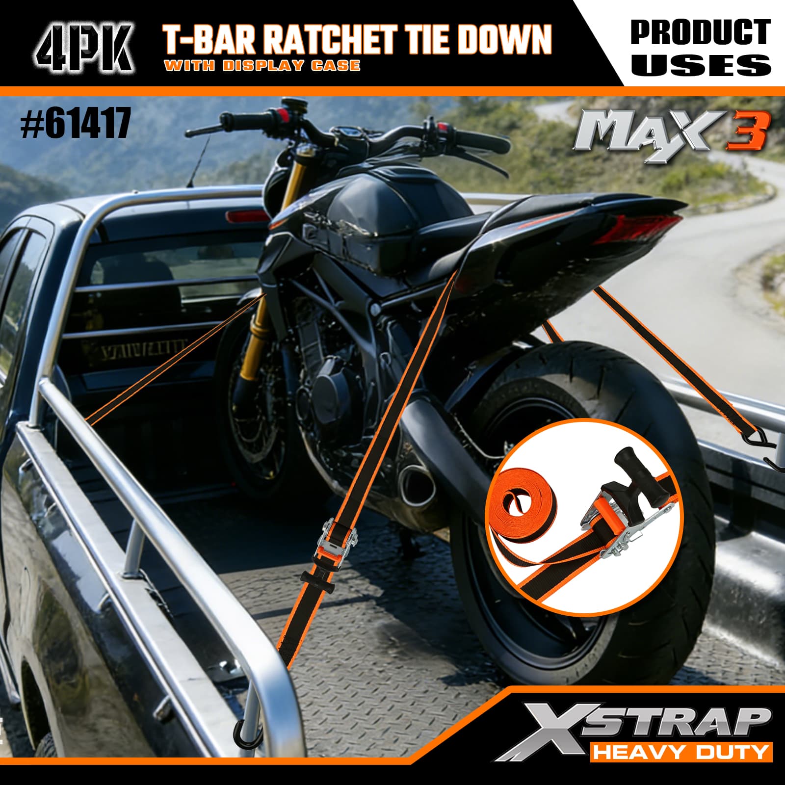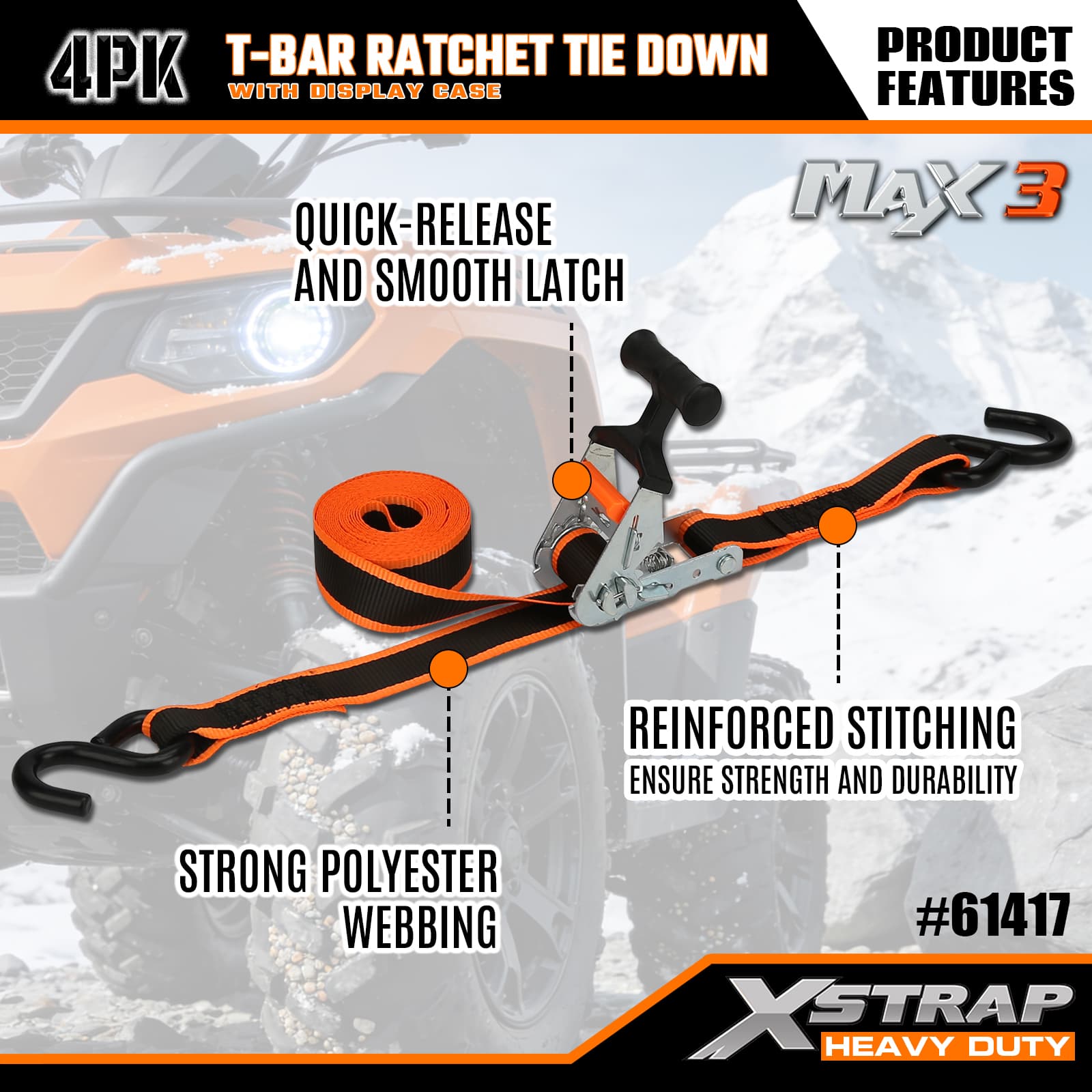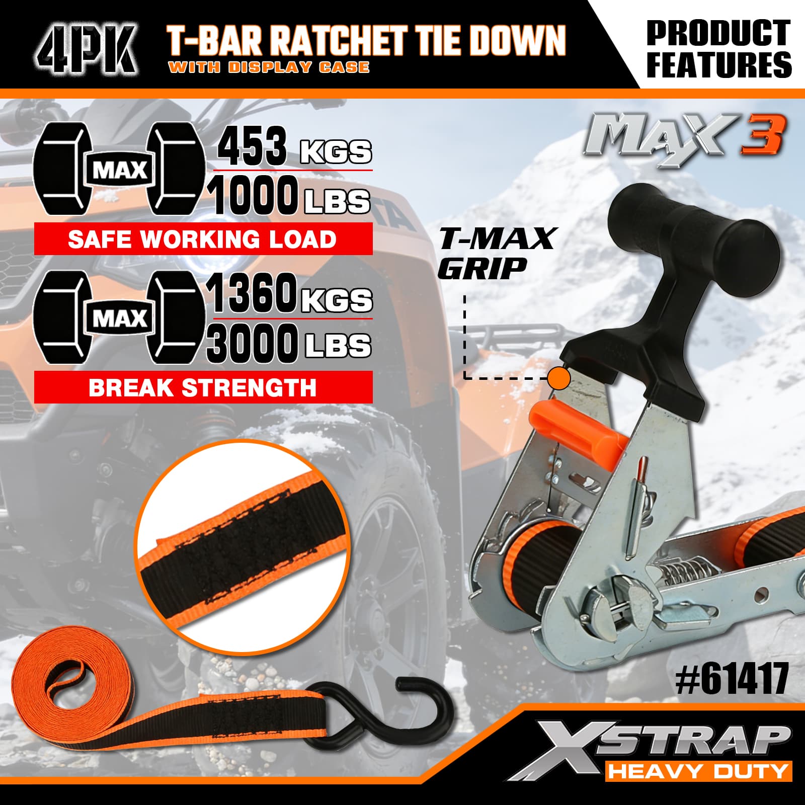 - مکانیزم ضامن دار T-Bar Max Grip: دارای یک دسته ارگونومیک T-bar است که اهرم تقویت شده ای را برای کشش صاف و کم تلاش ارائه می دهد - کارکرد آن شهودی است، بنابراین کاربران با هر سطح مهارتی می توانند محموله را به سرعت ایمن کنند.