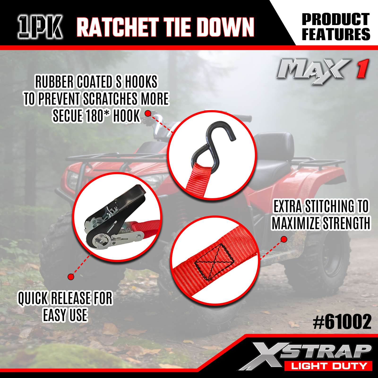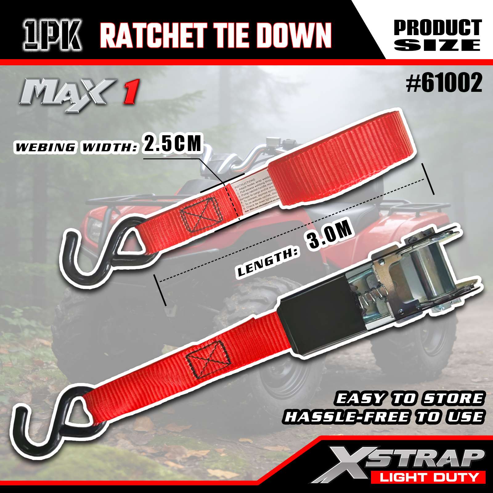 Xstrap 1 بسته تسمه بند ضامن دار، 1 "x10" - درپوش بار 300 پوندی - تسمه های استحکام شکستگی 900 پوندی برای وسایل متحرک، تجهیزات چمن، موتور سیکلت، استتار
