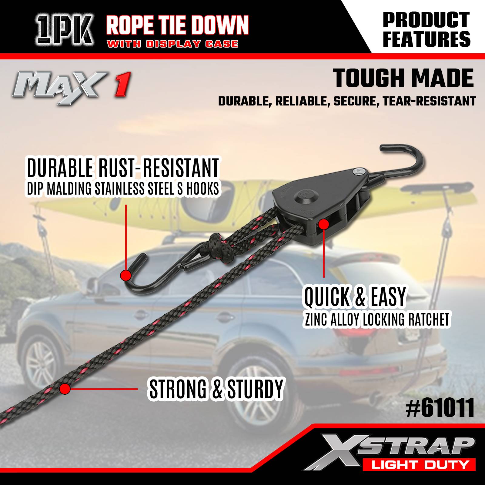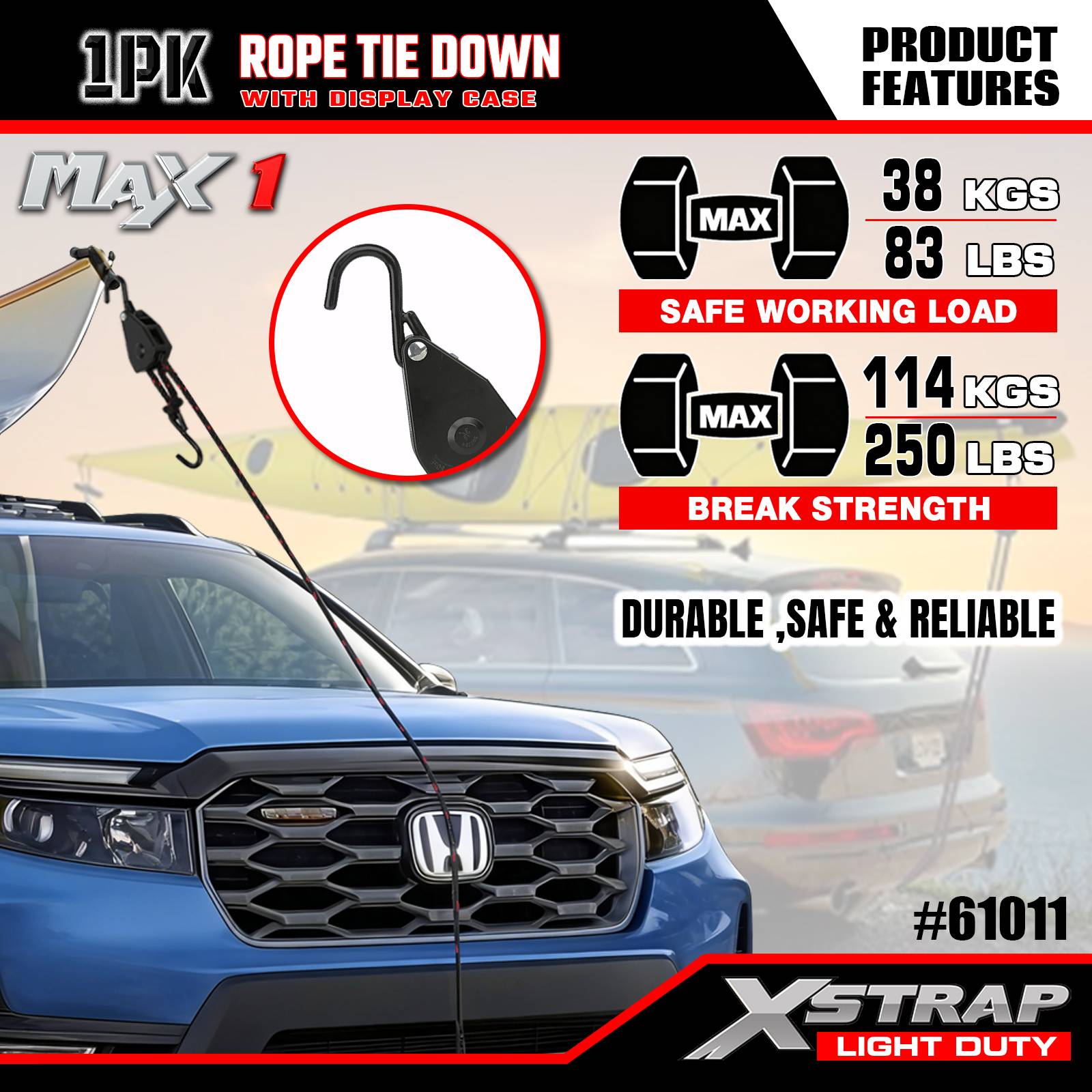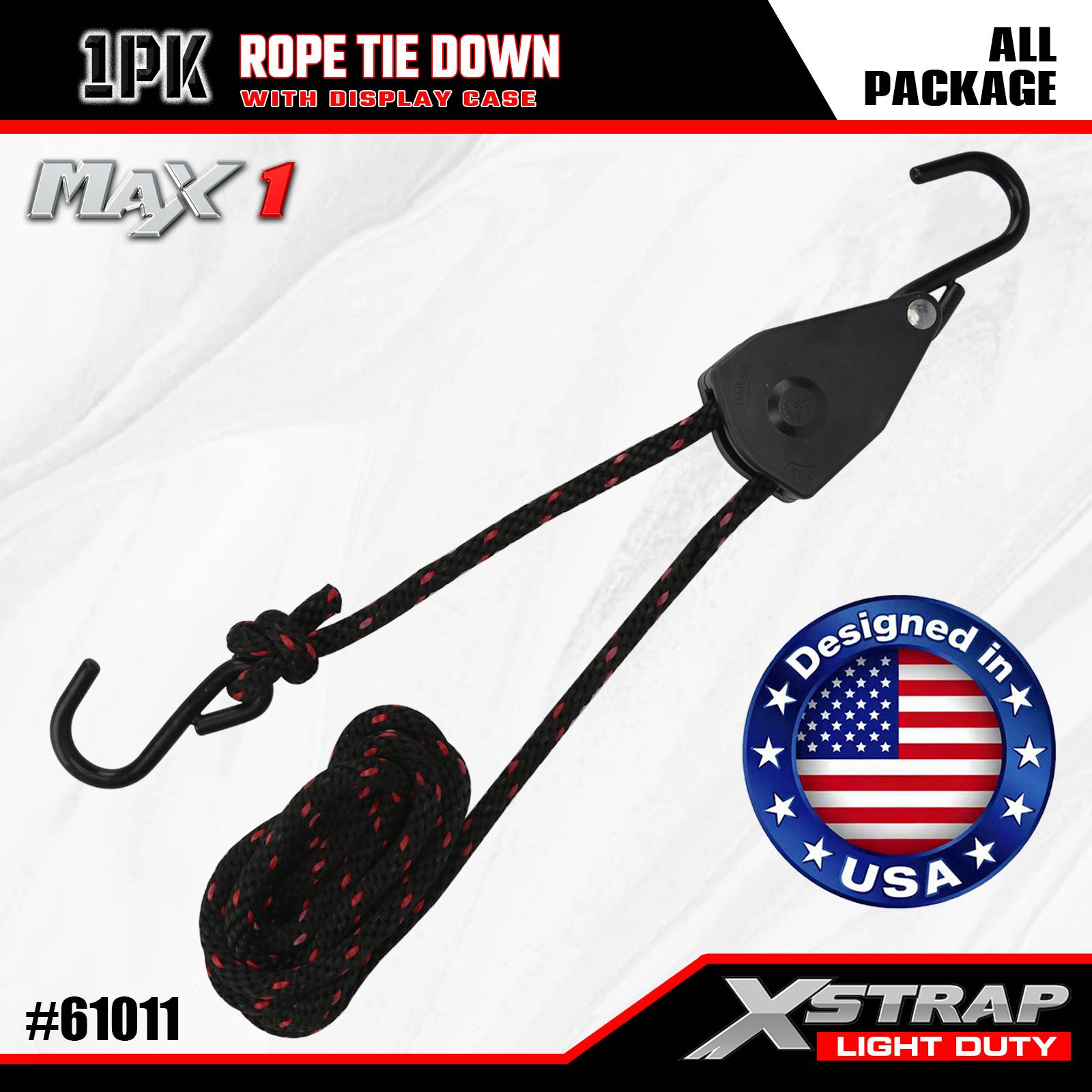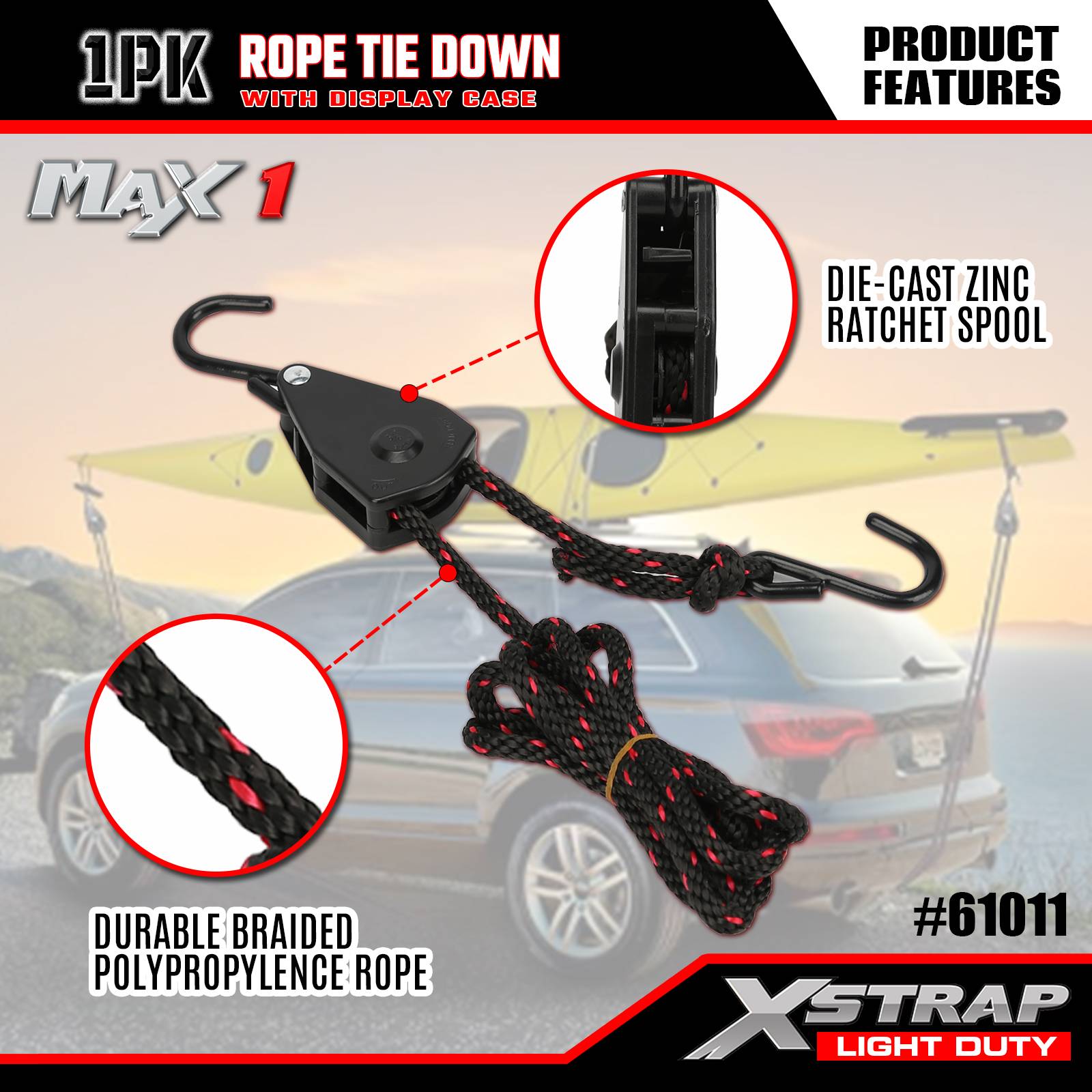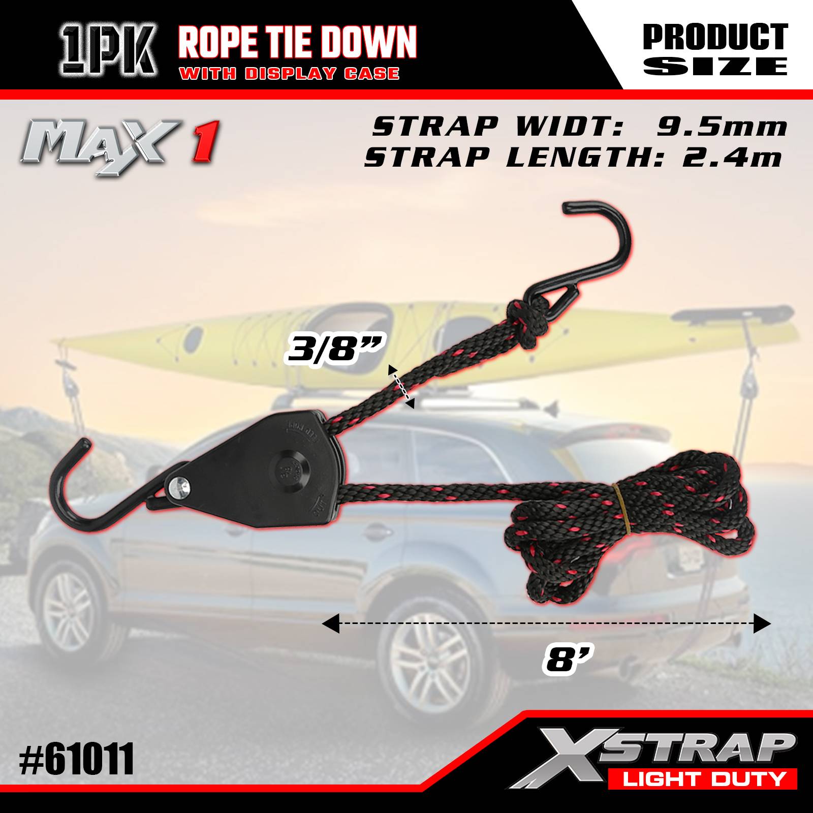 Xstrap 1 تسمههای بستهبندی طناب، 3/8 اینچ × 8 اینچ - سقف بارگیری 83 پوند - تسمههای استحکام شکستگی 250 پوندی برای ایمن کردن بارهای سبک (کایاک، دنده، تجهیزات کوچک) به وسایل نقلیه/قفسهها