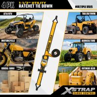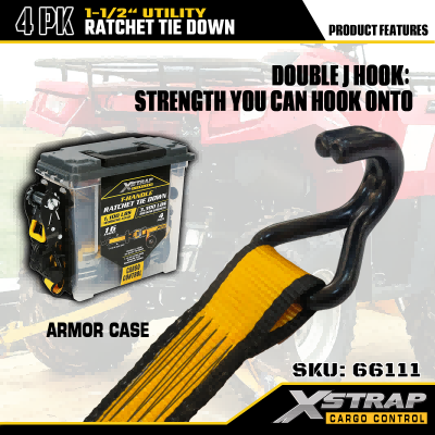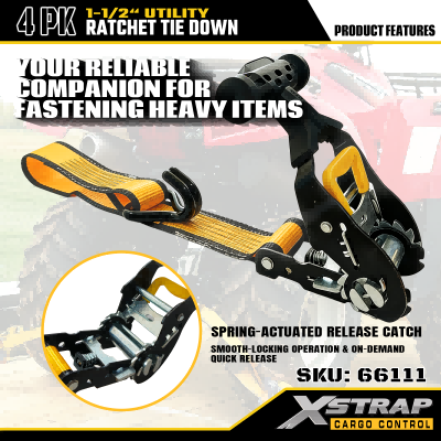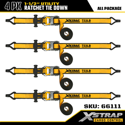 Xstrap 4 Pack T Handle Ratchet Tie Down، 1-1/2" x16 اینچ تسمه بند ضامن دار پلی استر، تسمه های ایمن بندکشی محموله با ظرفیت 1100 پوند با قلاب های J دوتایی برای کامیون کنترل بار، کامیون SUV، موتور سیکلت بالا.