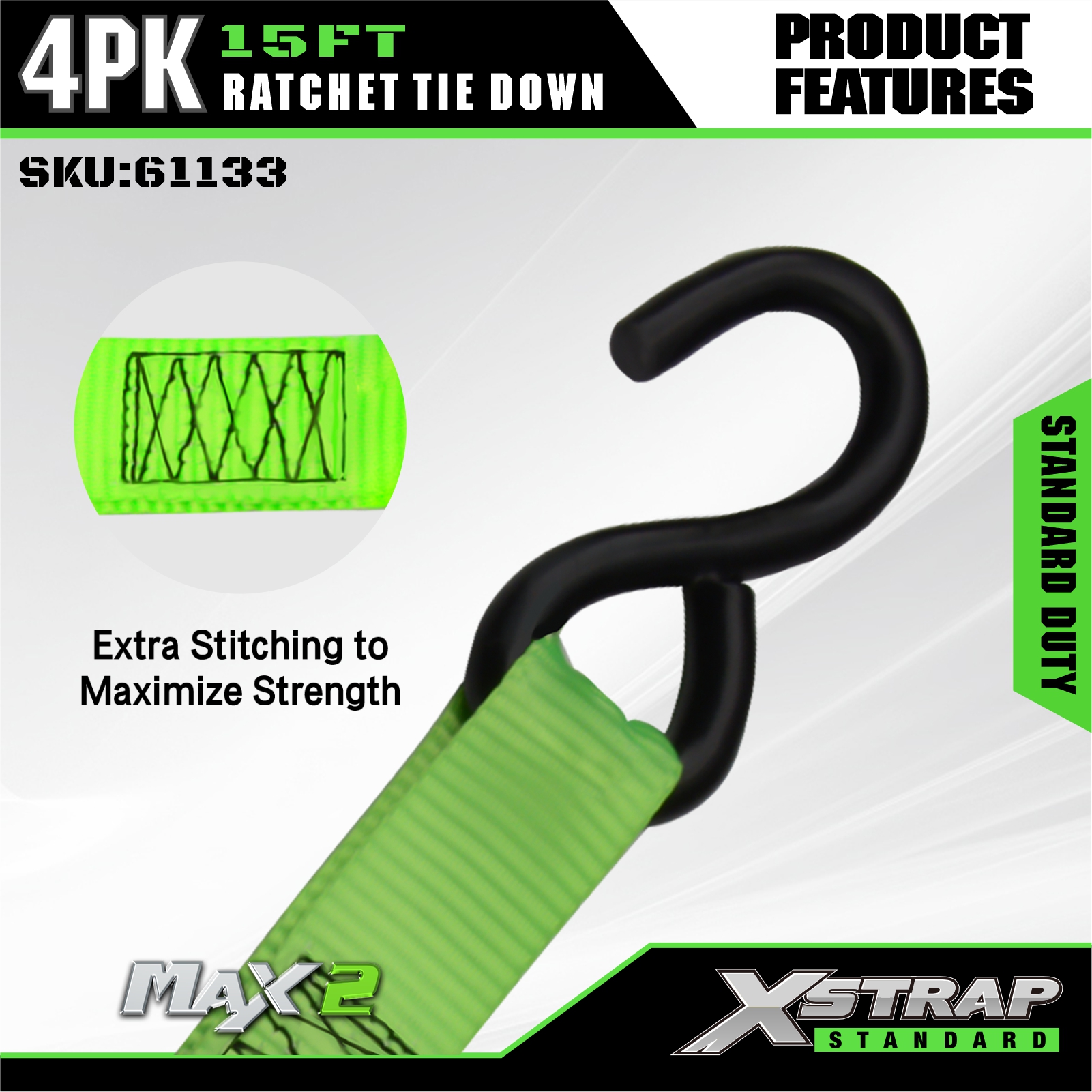 - مکانیزم ضامن دار صاف با فنر: دارای یک سیستم ضامن دار به کمک فنر پاسخگو است که کشش سریع و مداوم را امکان پذیر می کند - بدون عملکرد سفت و ایمن کردن سریع محموله را برای کاربران با هر سطح مهارتی آسان می کند.