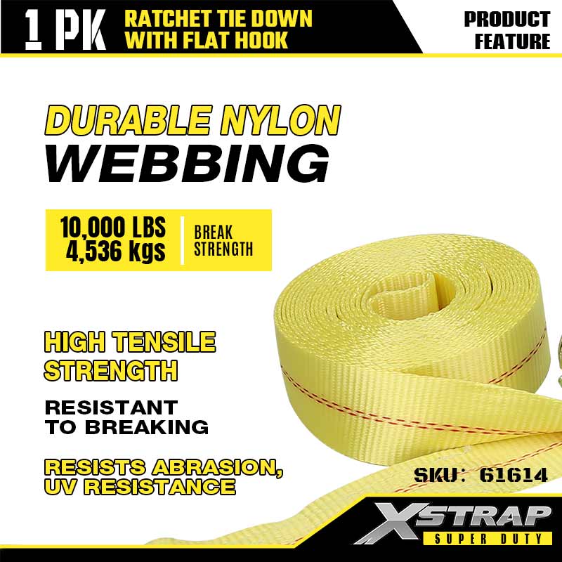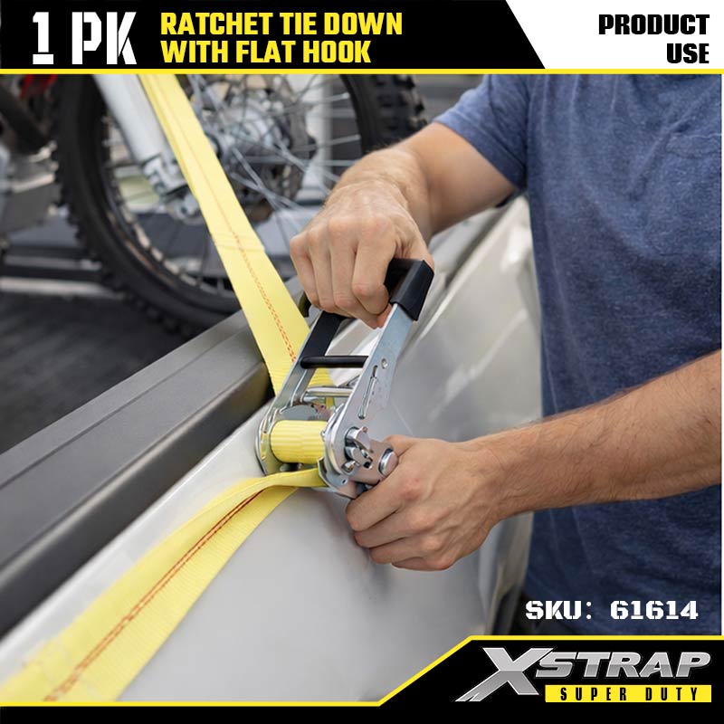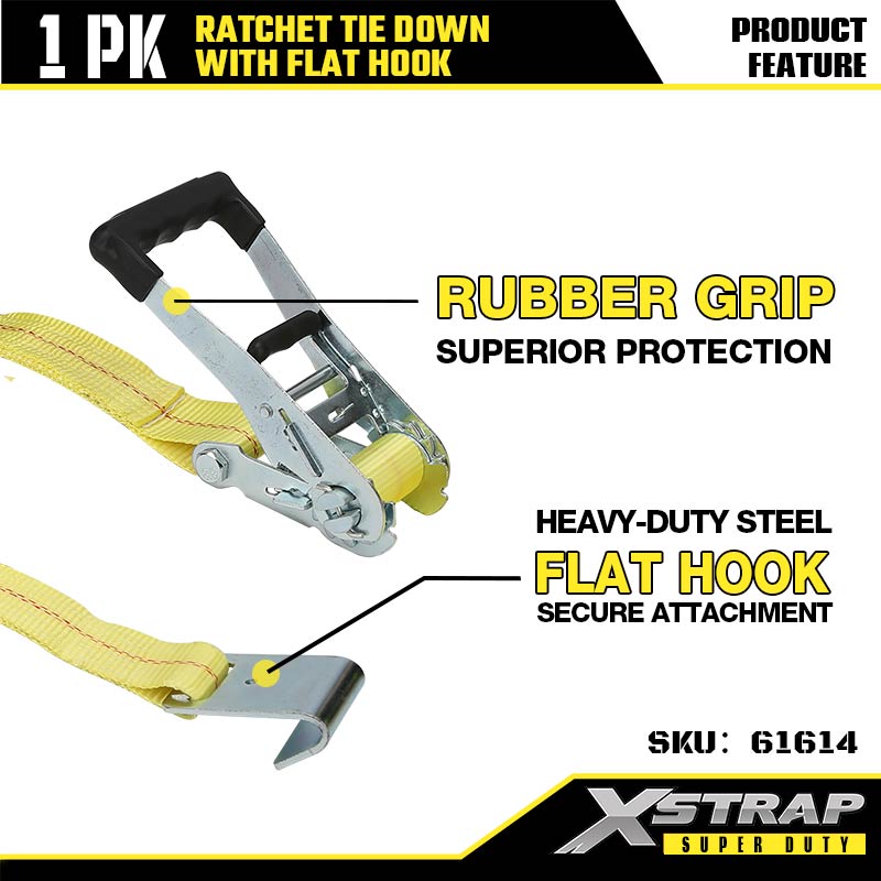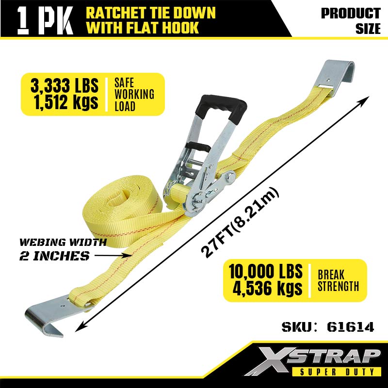 Xstrap Ratcet Tie Down with Hooks Flat، بند 2 اینچی 27 اینچی پلی استر بند بند ضامن دار، 3333 £ ظرفیت تسمه ایمن باری با قلاب تخت برای تریلر سنگین، تخت تخت تخت تریلر قایق اسکی، ماشین کوچک Hea.
