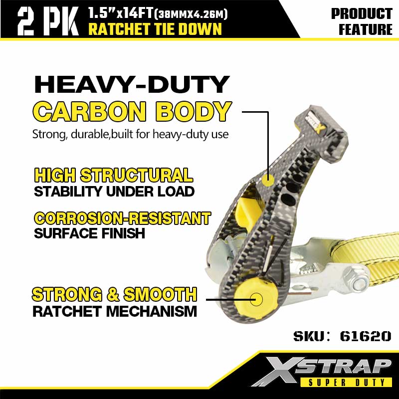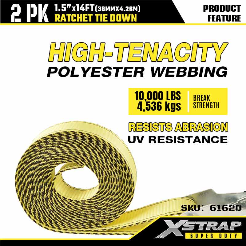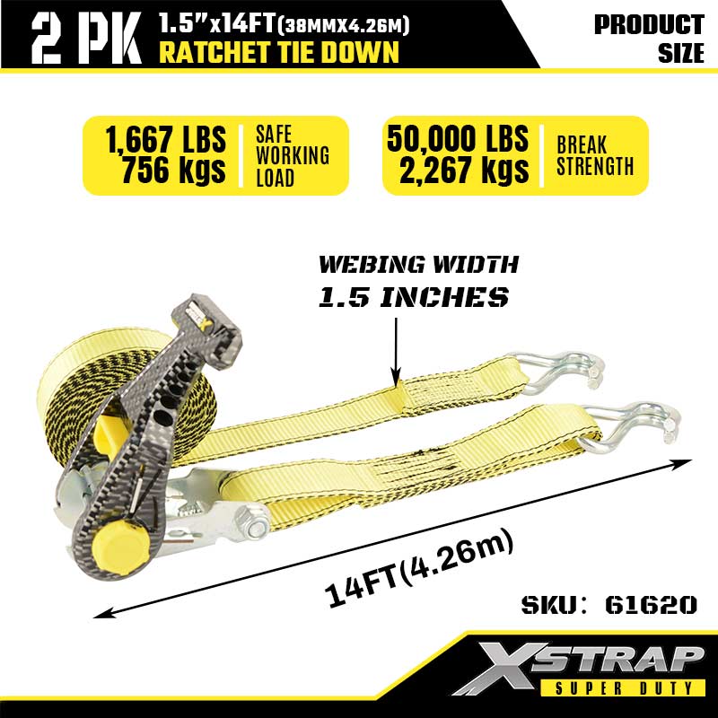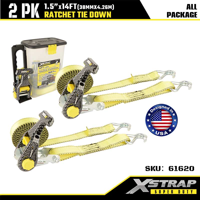 Xstrap 2PK Ratcet Tie Down with Double قلاب J، 1-1/2 اینچ x 14 اینچ تسمه تسمه بند ضامن دار پلی استر، ظرفیت 1667 پوندی تسمه ایمن شلاق باری با قلاب J دوبل برای تریلر سنگین، تخت تخت تریلر Ellki قایق.